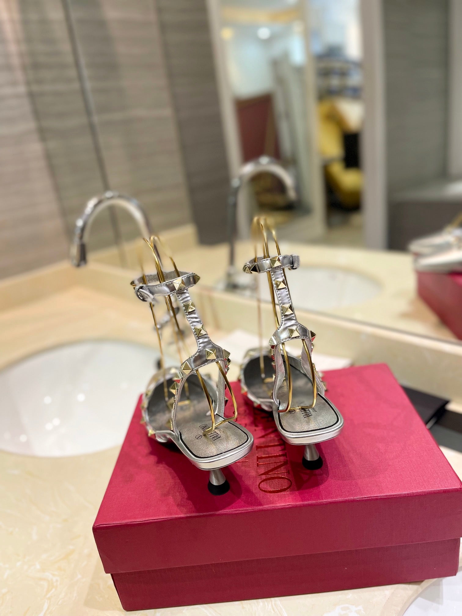 ROCKSTUD SLINGBACK IN SILVER CALFSKIN 50MM