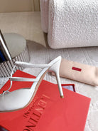 Rockstud Wispy Calfskin Mule 90mm Matte White
