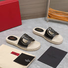 Vlogo Cut-Out Slide 20 Black Calfskin Beige Sole Raffia