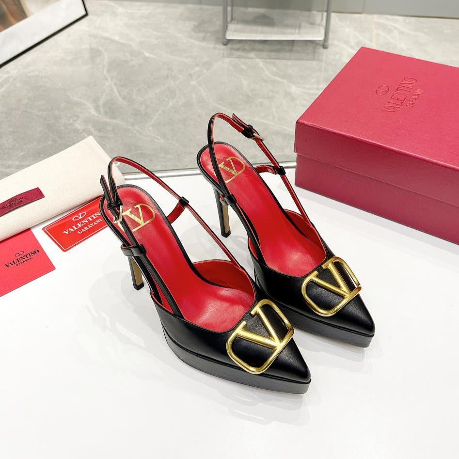 vlogo signature black red calfskin slingback platform pump 120mm
