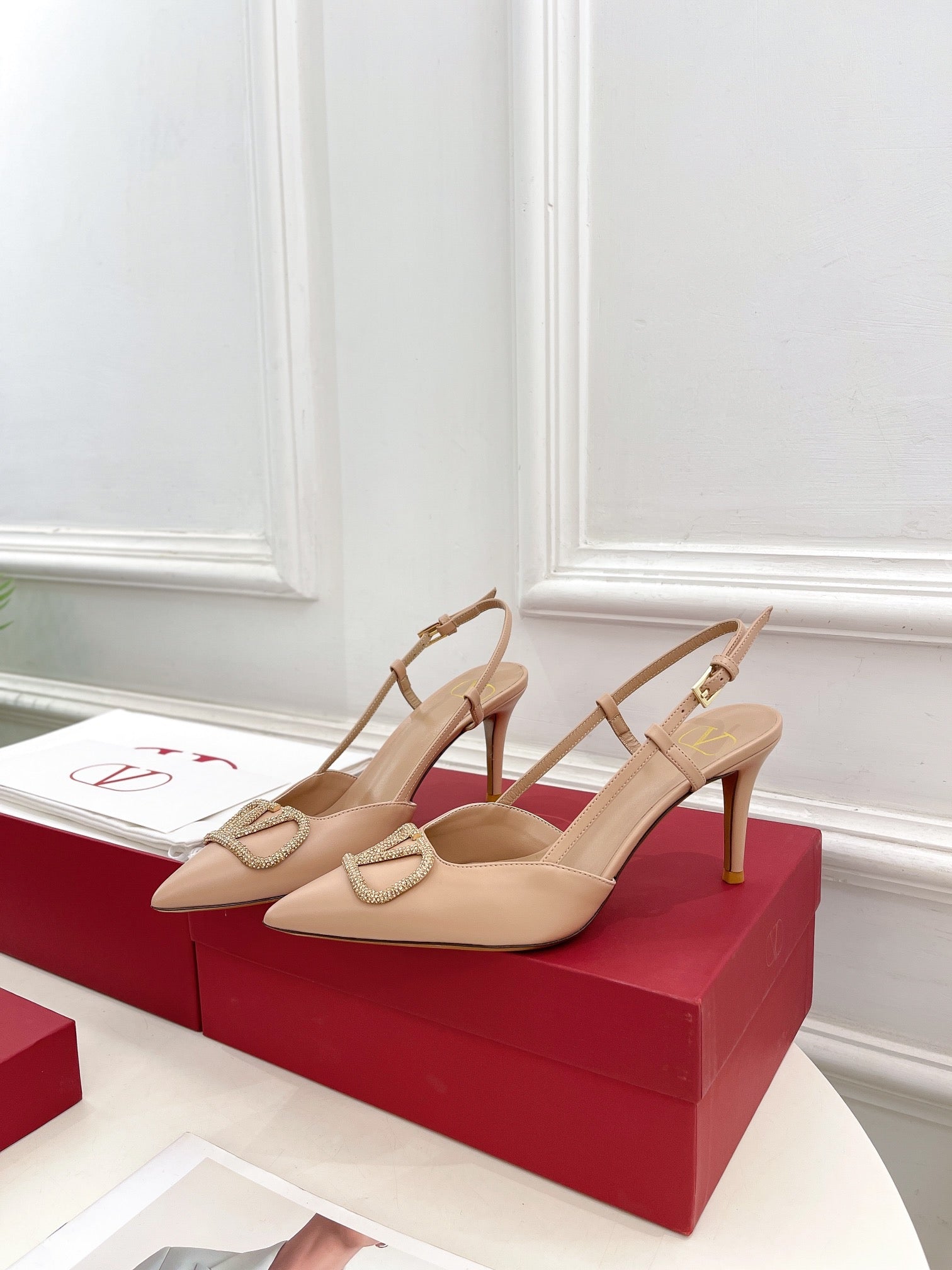 Vlogo Signature Diamond Slingback Pump Beige Calfskin