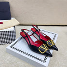 VLOGO SLINGBACK PUMP IN BLACK CALFSKIN LEATHER WITH GOLD LOGO