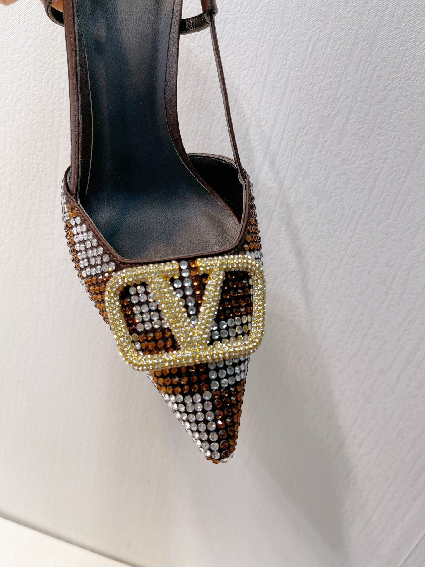 VT High Heeled Slingbacks Brown Chocolate Sheepskin 292826