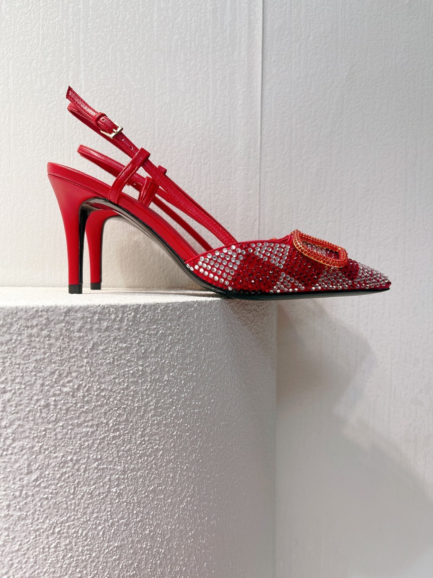 VT High Heeled Slingbacks Cherry Red Sheepskin 292819