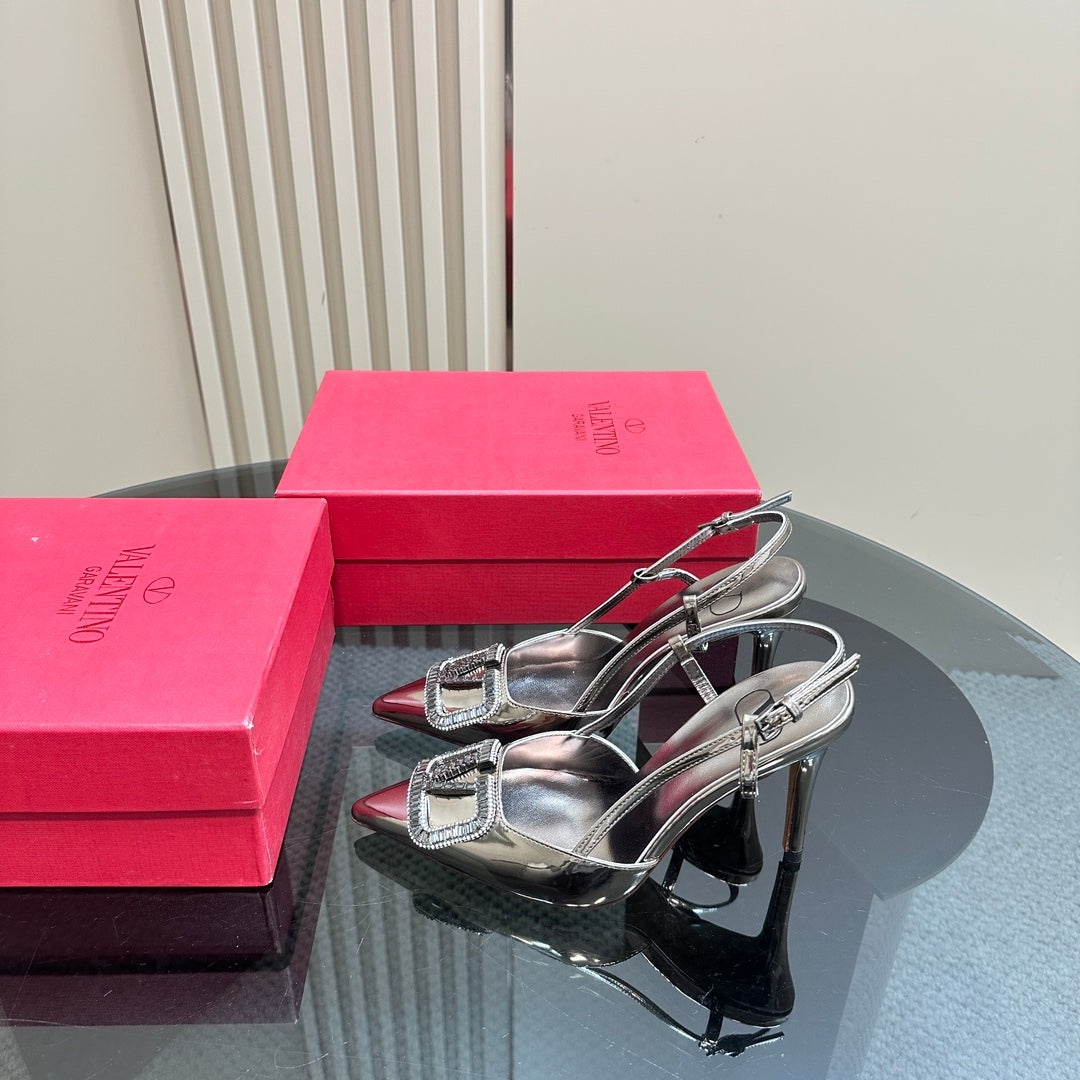 Vlogo Glow Laminated Nappa Leather Slingback Pump 100mm Dark Silver 999053
