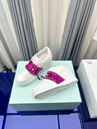 FLATFORM ROCKSTUD UNTITLED SNEAKER IN WHITE MIX MAGENTA PURPLE CALFSKIN