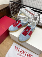 Upvillage Trainer 30mm In Blue Grey Mix Red Suede With Laminated Calfskin 990149