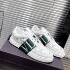Valenti Low Top VL7N White Grey Mix Dark Green Calfskin And Canvas 993734