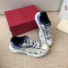 Valentino Sneaker 50mm In White Mix Grey Blue Mesh Fabric And Cowhide 814278