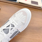 VL7N LOW-TOP WHITE CALFSKIN AND GREY FABRIC SNEAKER WITH BANDS