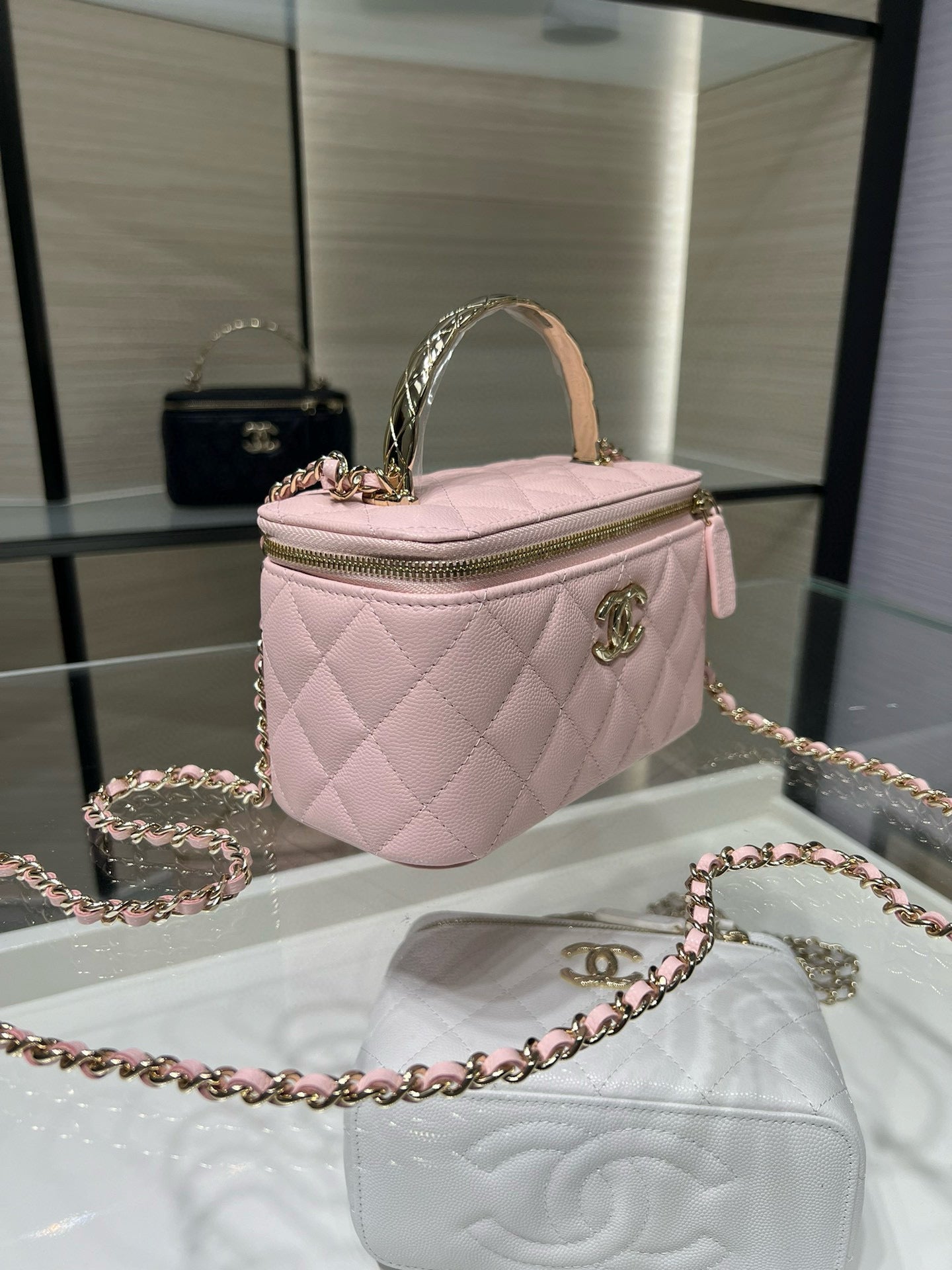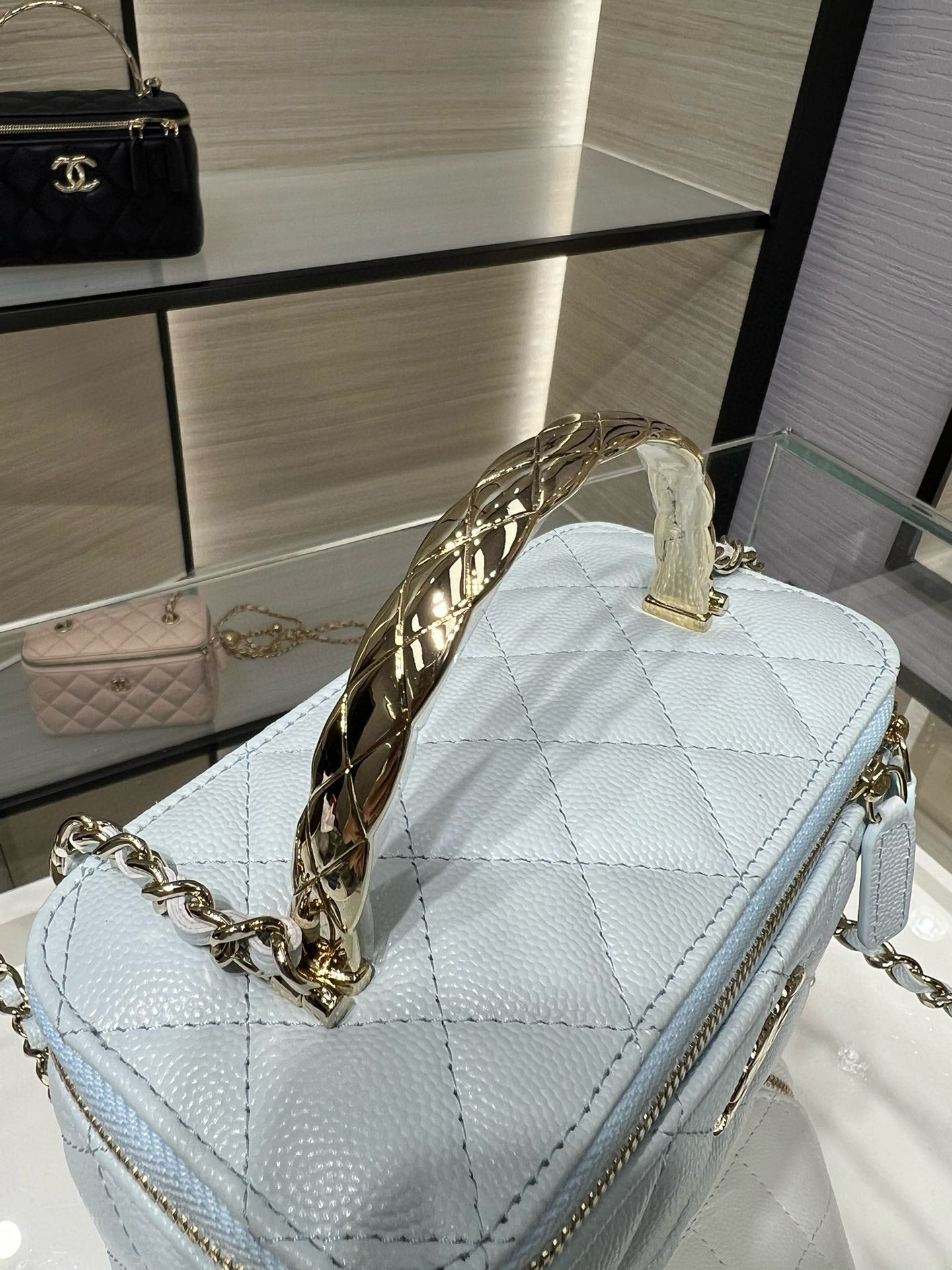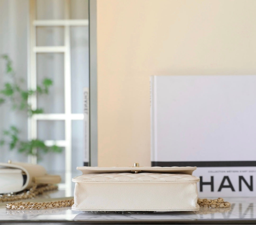 CC 25C Vanity Top Handle 17cm White Grained Calfskin Light Gold Hardware