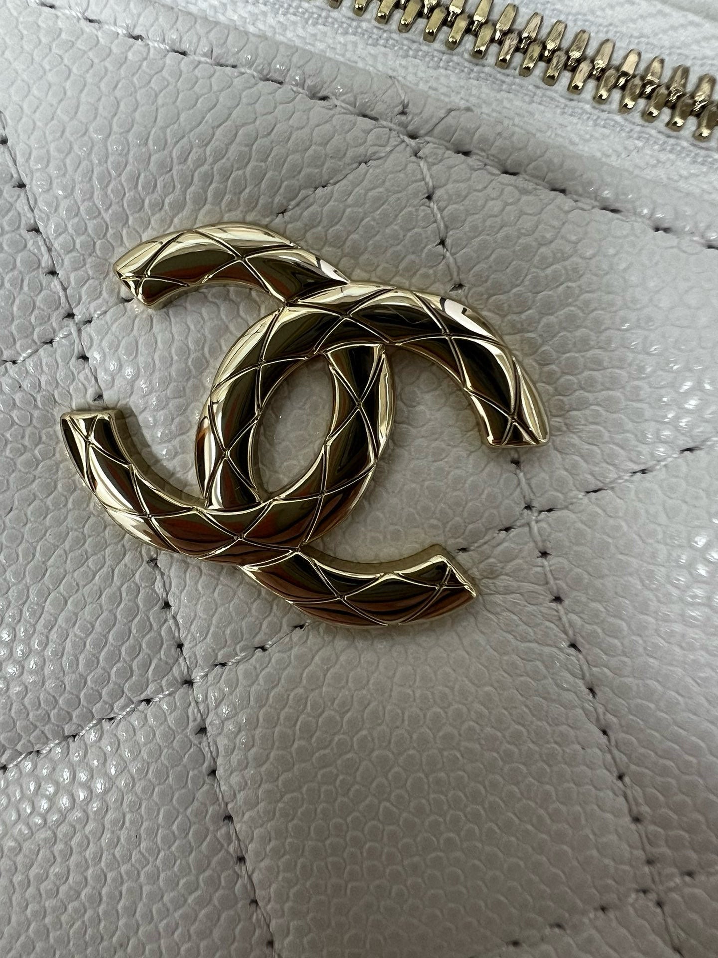 CC 25S Small Vanity 17cm White Grained Calfskin Light Gold Hardware