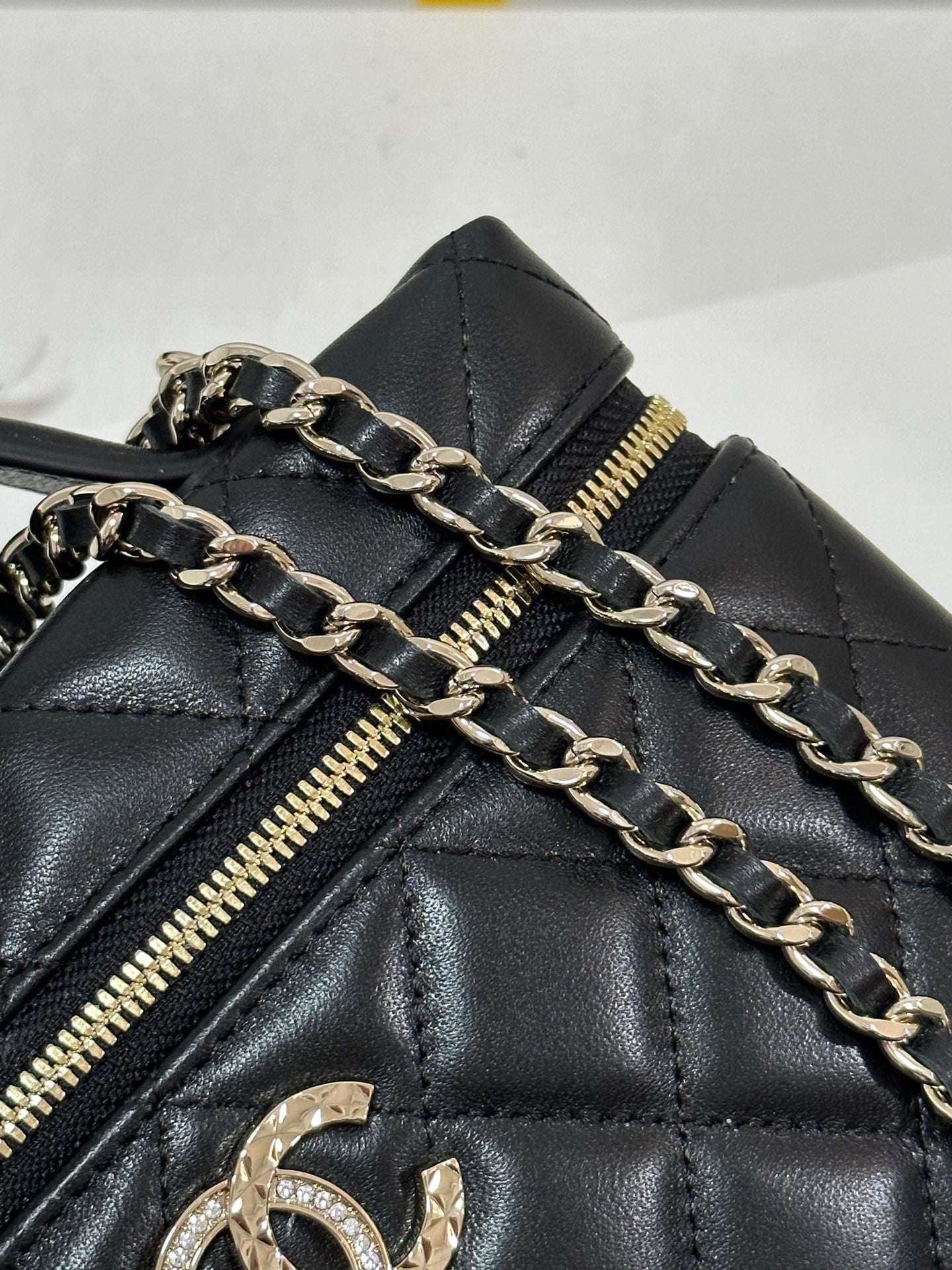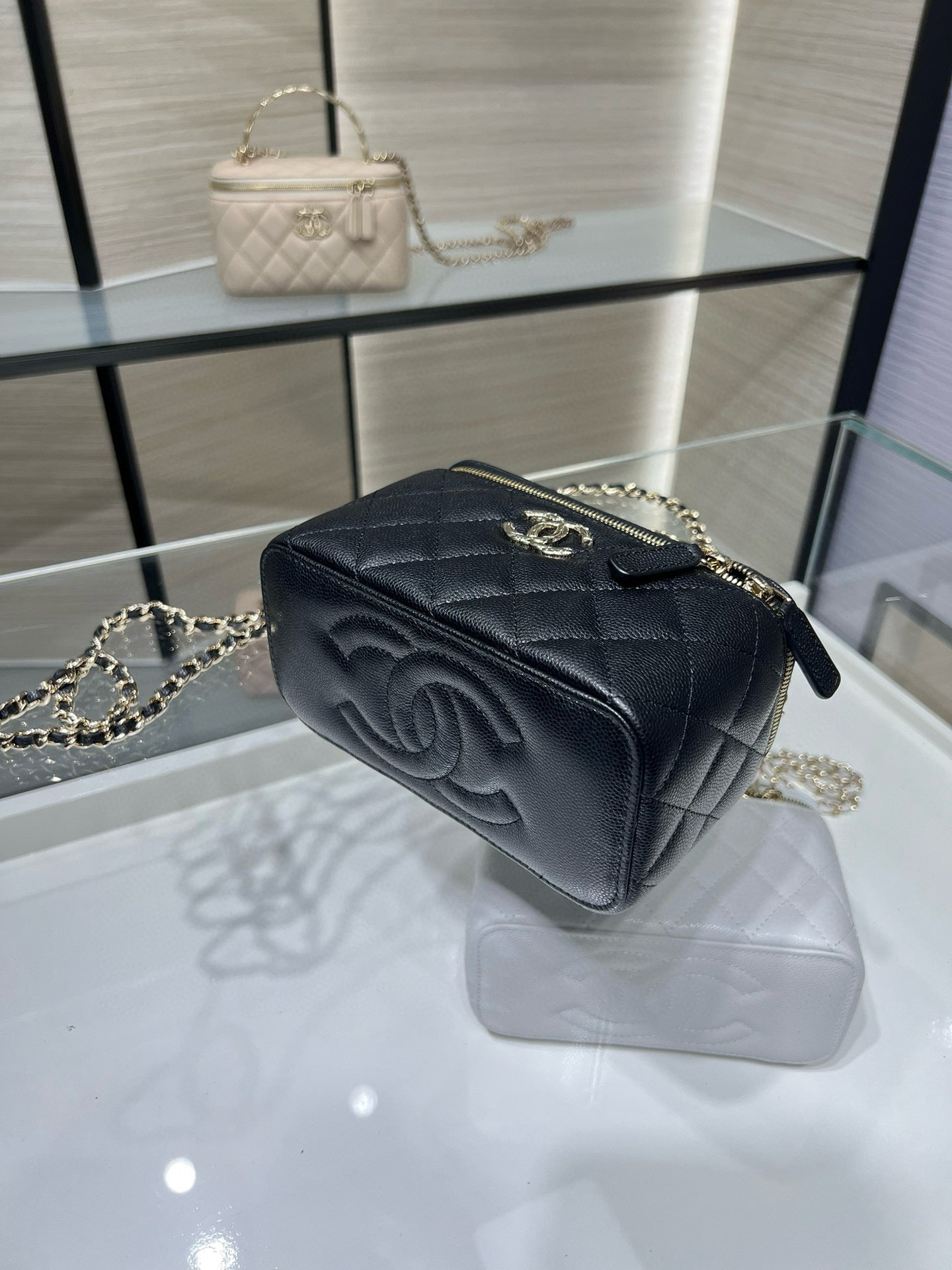 cc classic vanity bag 10cm black lambskin gold hardware