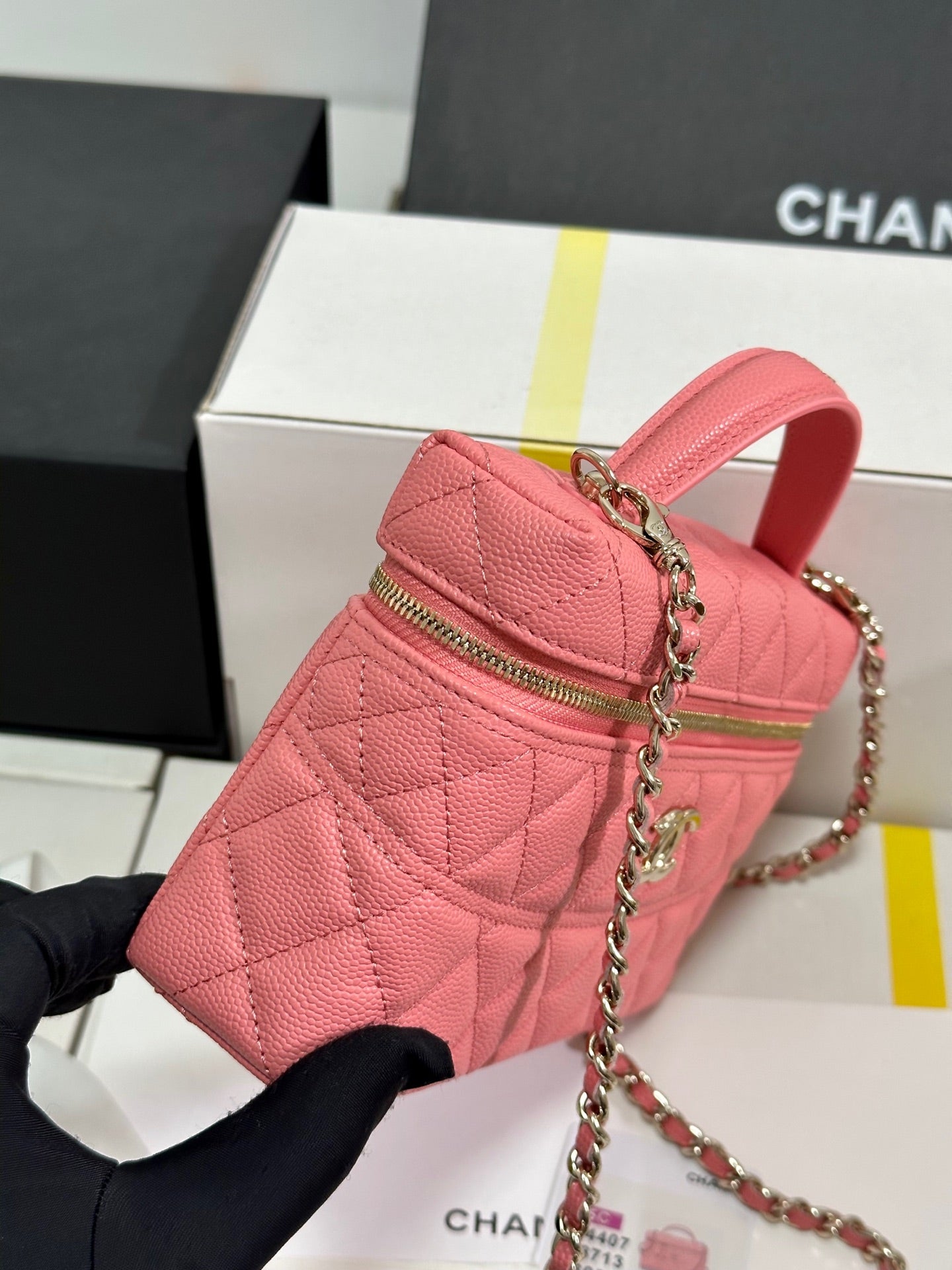 CC 25S Small Vanity 17cm Pink Grained Calfskin Light Gold Hardware