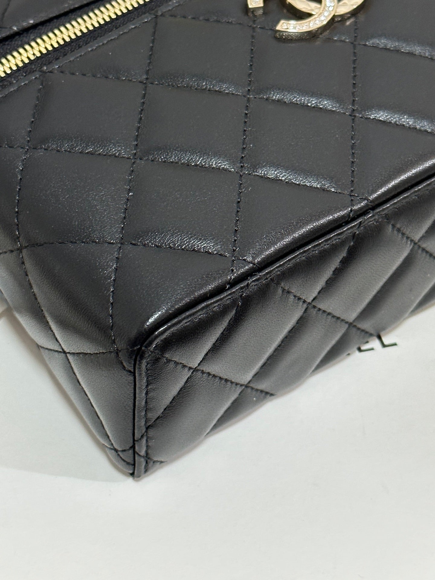 CC 25C Vanity Case 19.5cm Black Hanel Sheepskin Light Gold Hardware