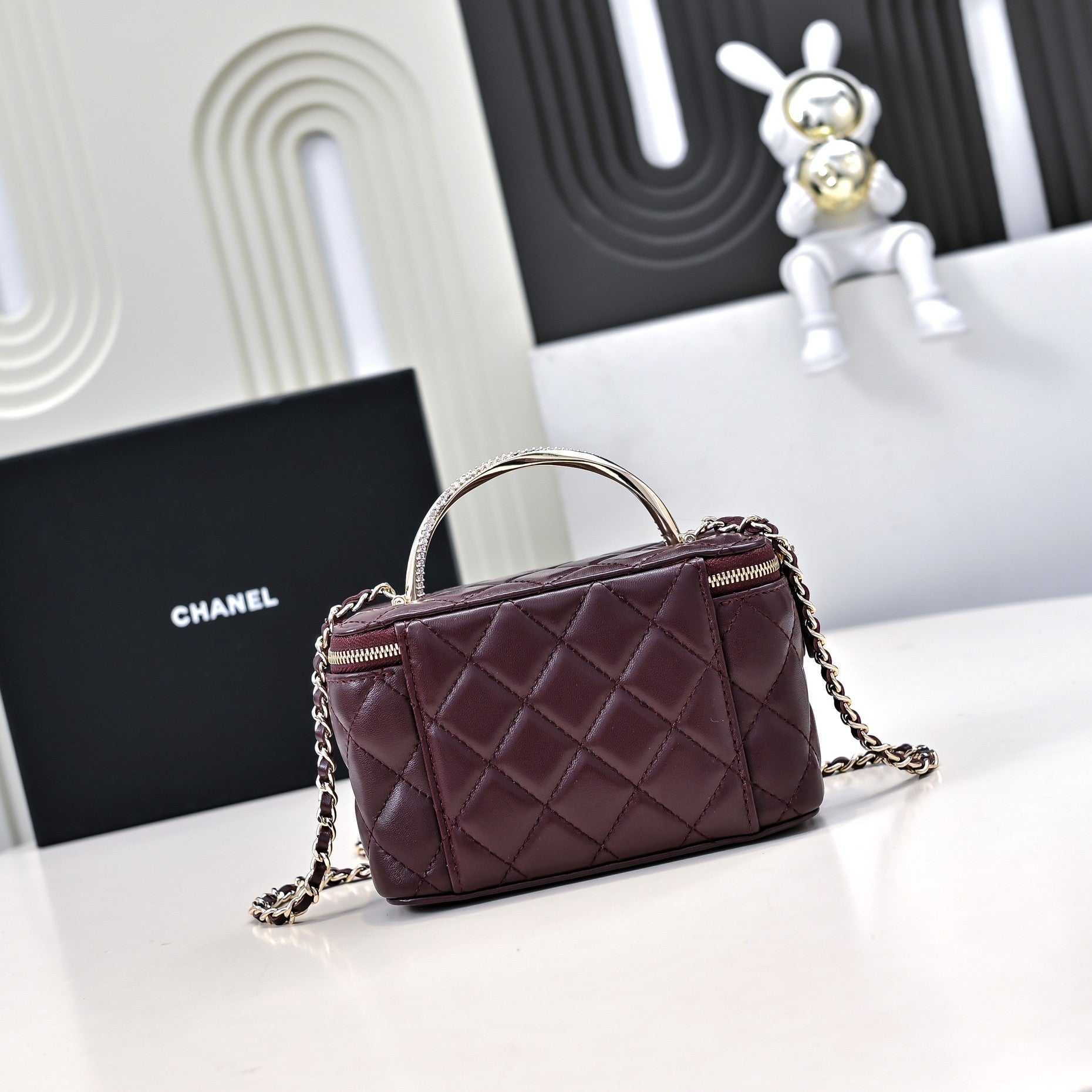 CC 24K Vanity Top Handle 17cm Burgundy Lambskin Silver Hardware