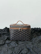 GOYA MAKEUP BOX BAG 20CM BLACK AND TAN CANVAS