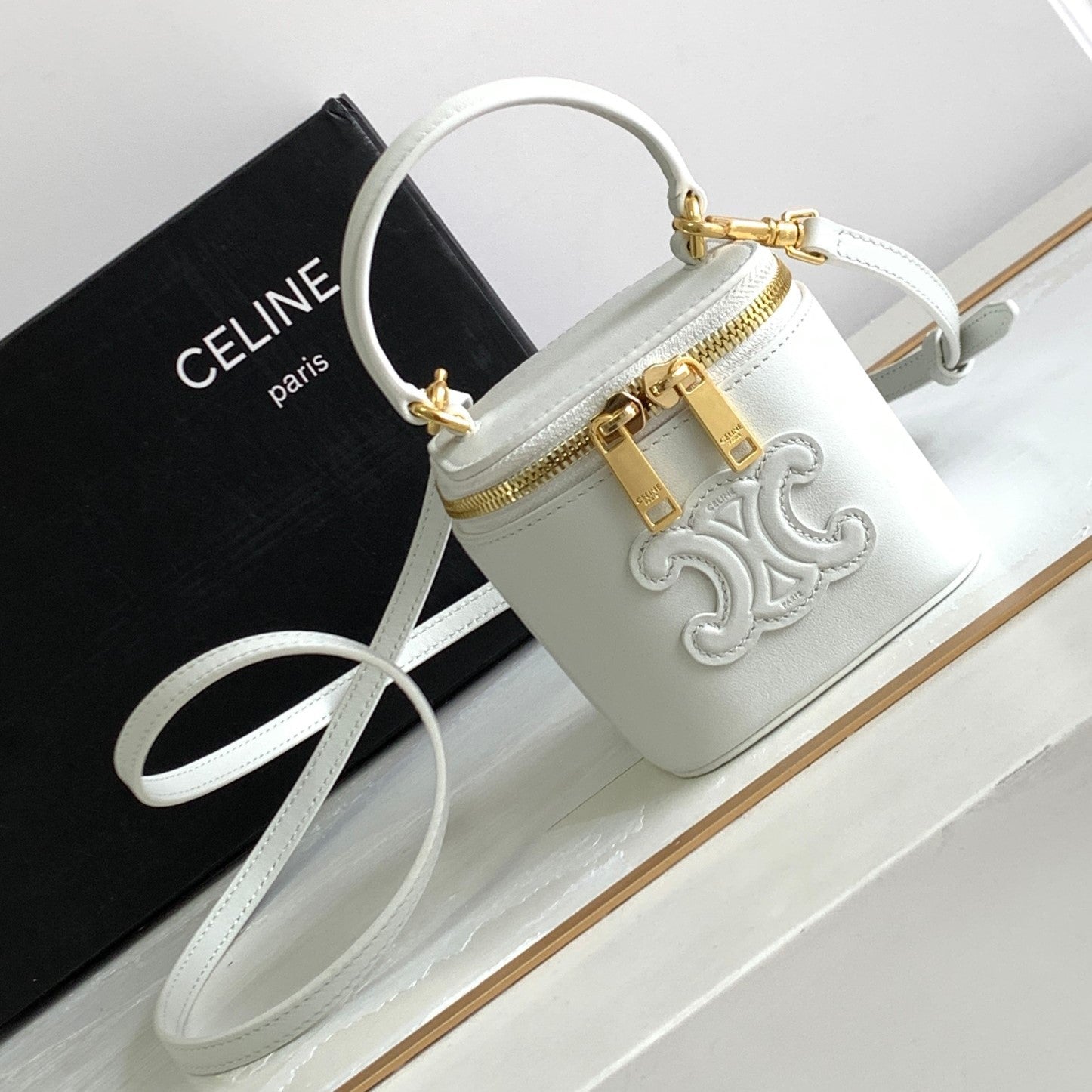 MINI VANITY CASE TRIOMPHE WHITE CALFSKIN