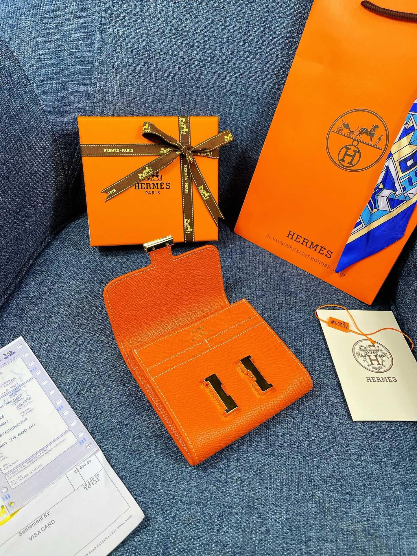 HM CONSTANCE 12 ORANGE CALFSKIN GOLD HARDWARE
