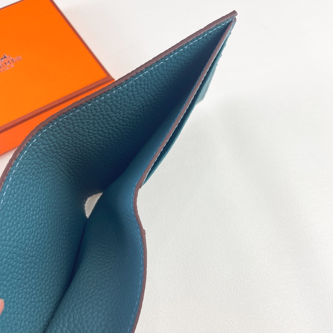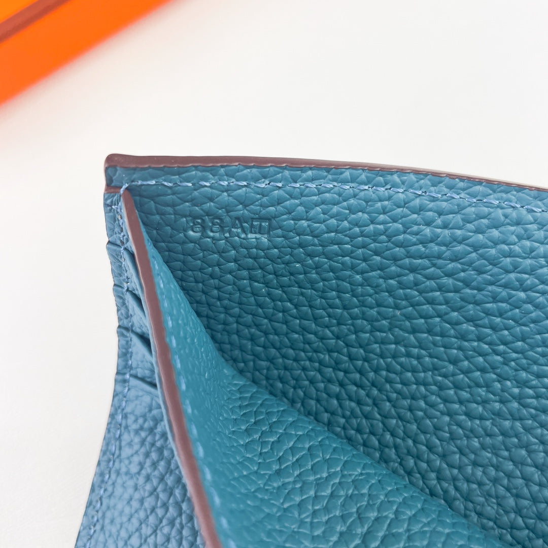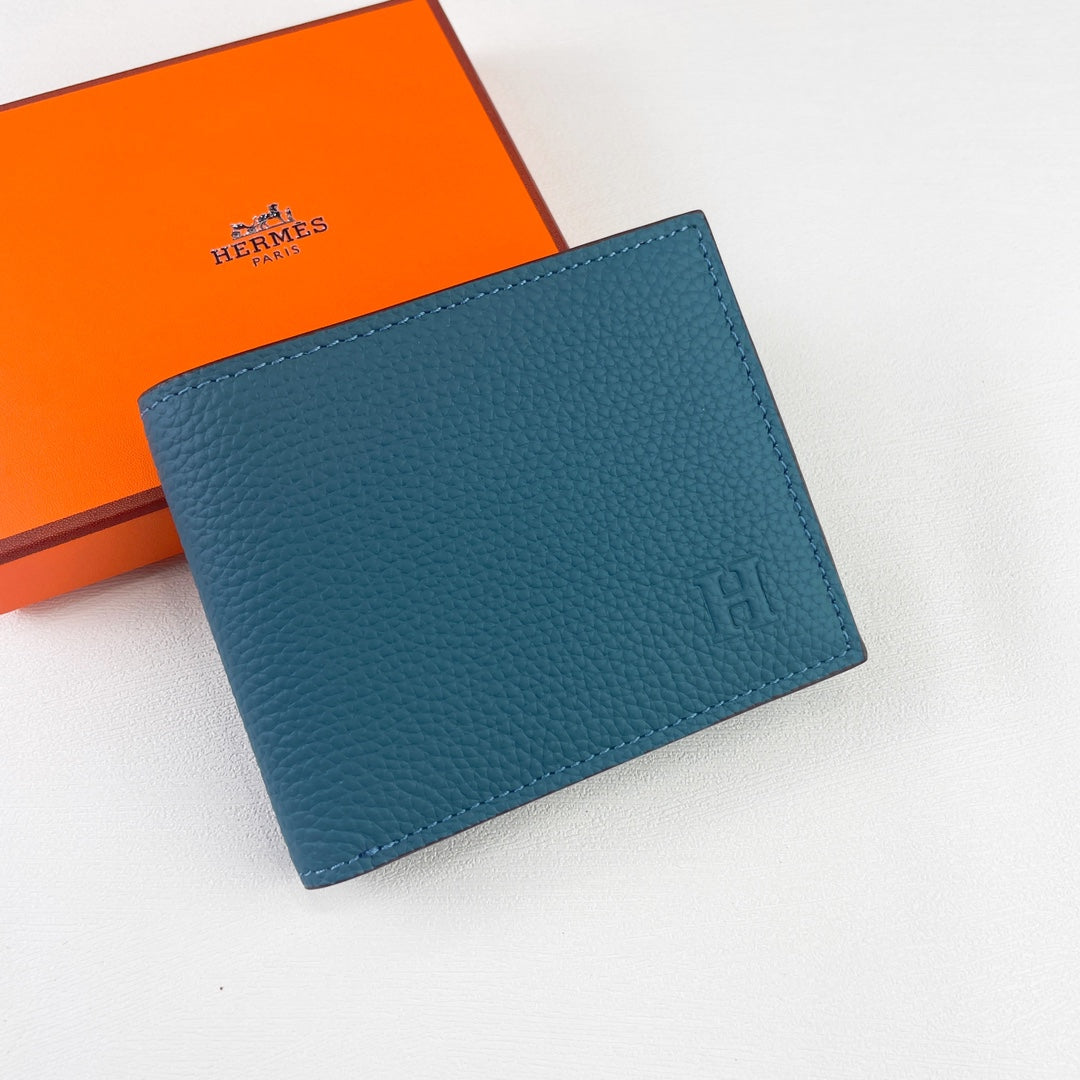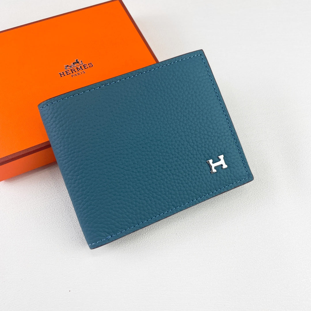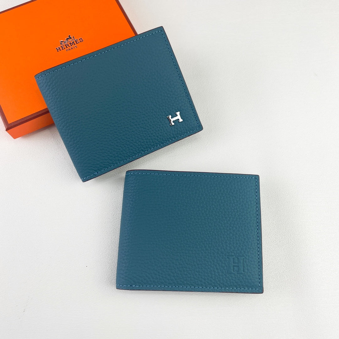 HM SILK’IN MEN’S SHORT WALLET 11.5 CERULEAN GRAINED CALFSKIN