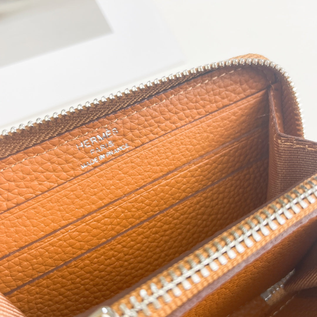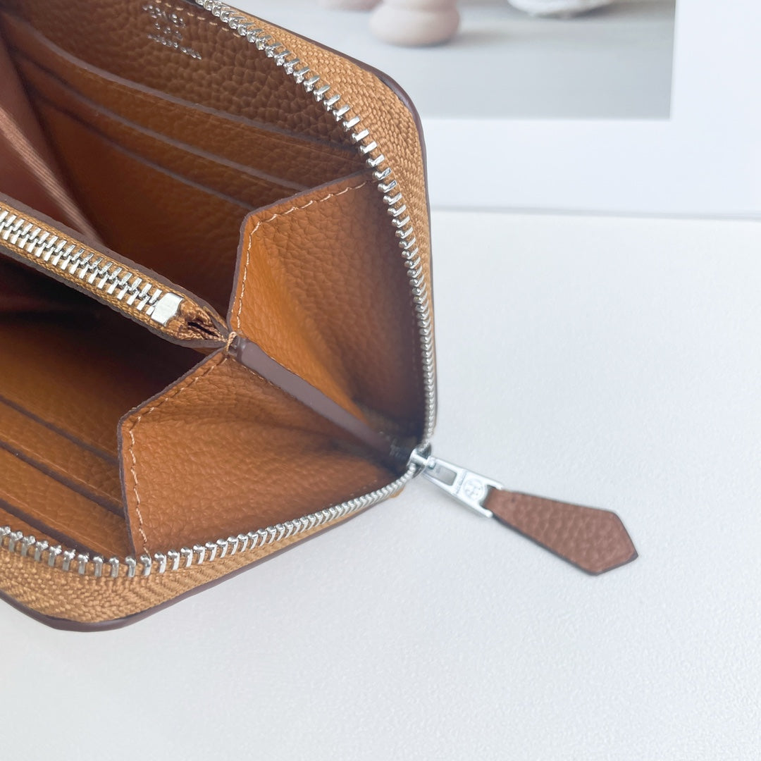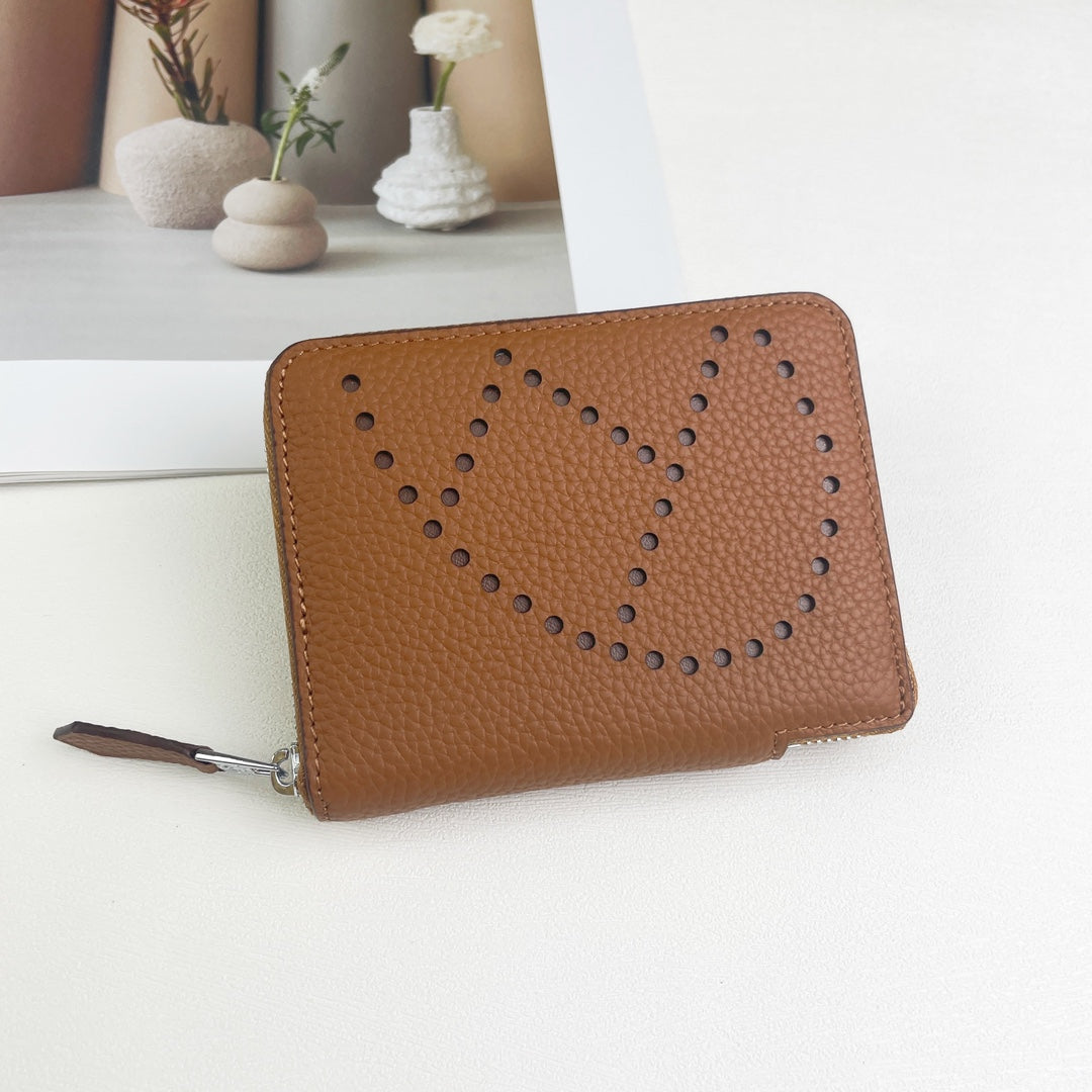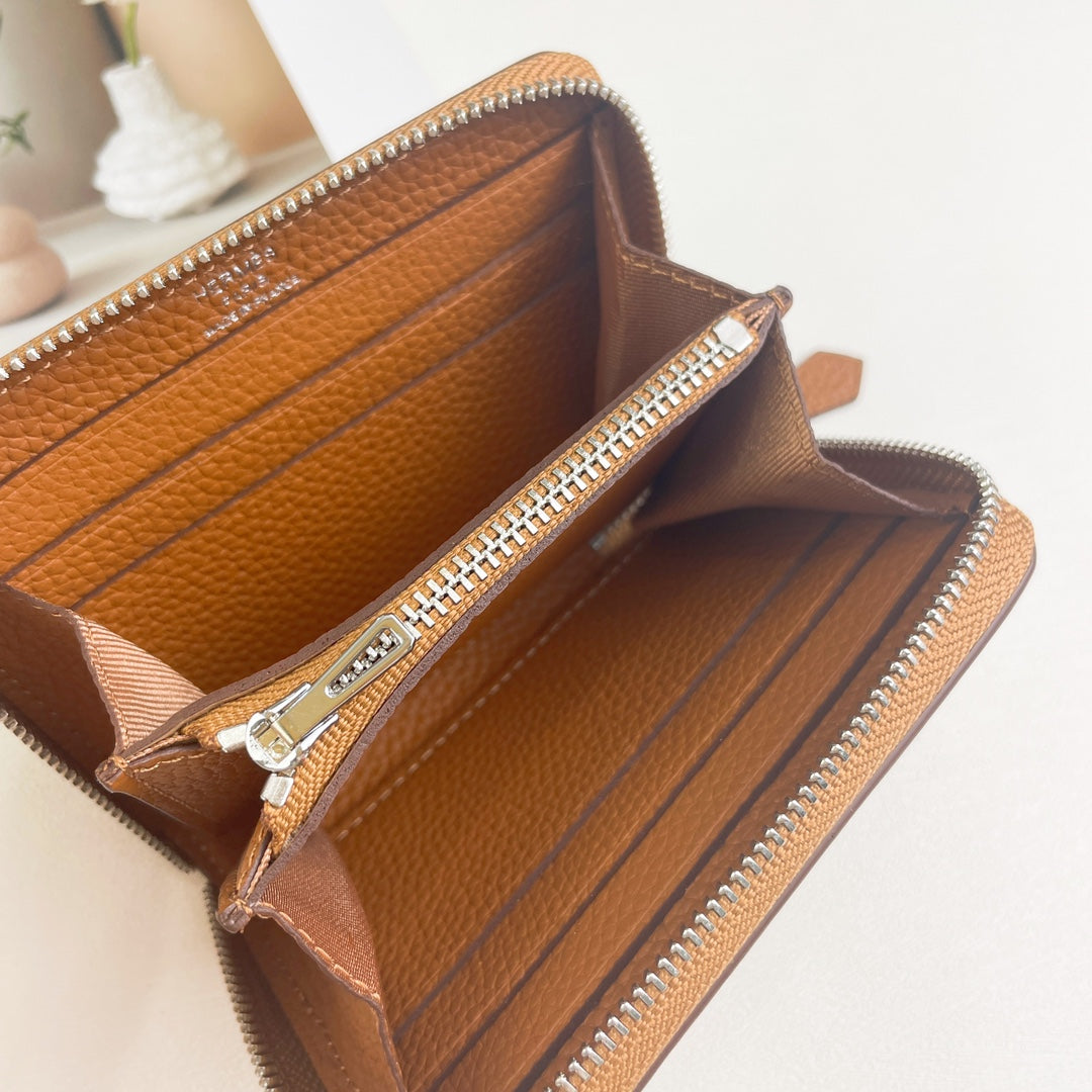 HM SILK'IN HOLED SHORT WALLET 11.5 BROWN GRAINED CALFSKIN