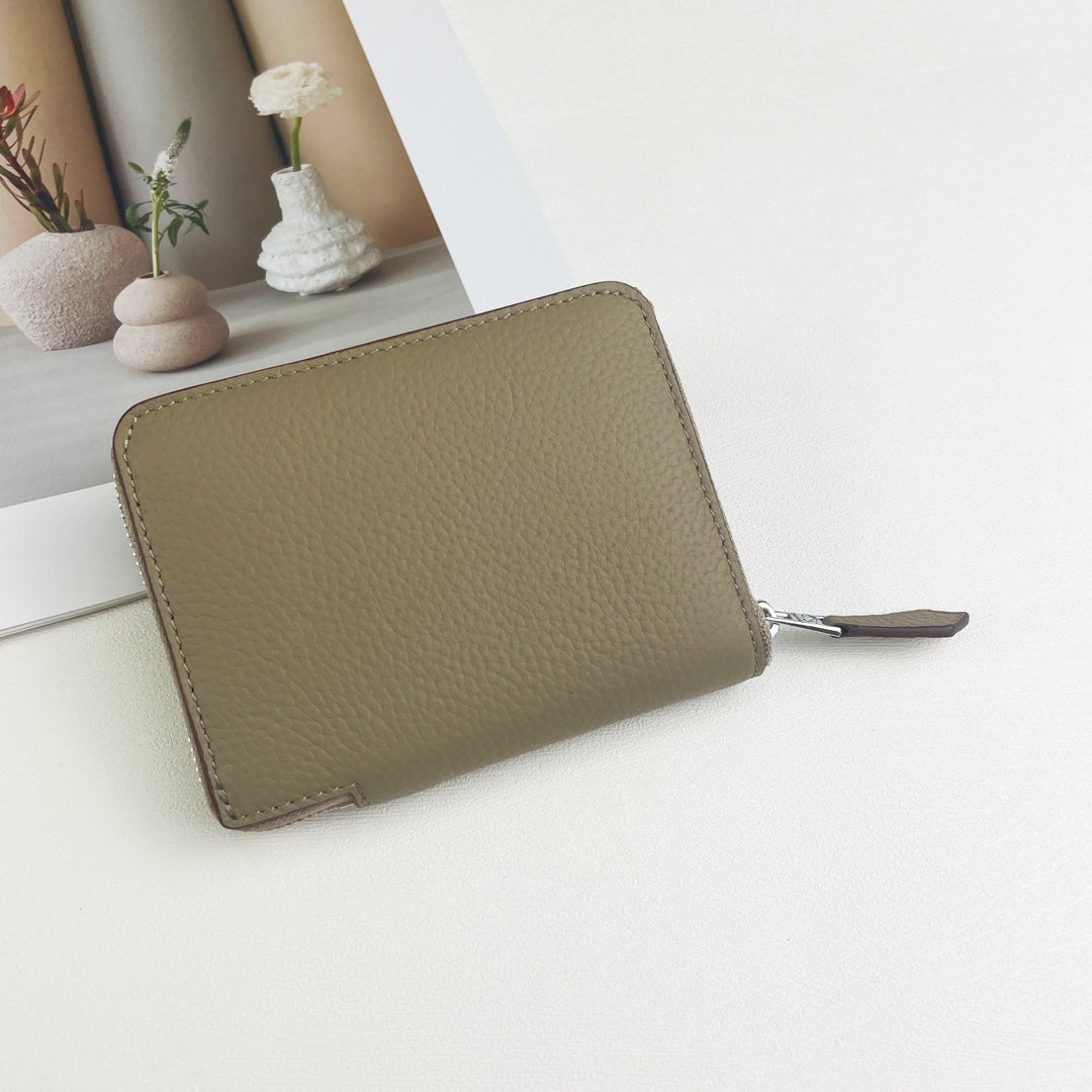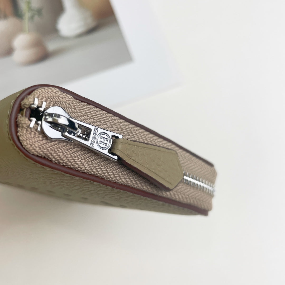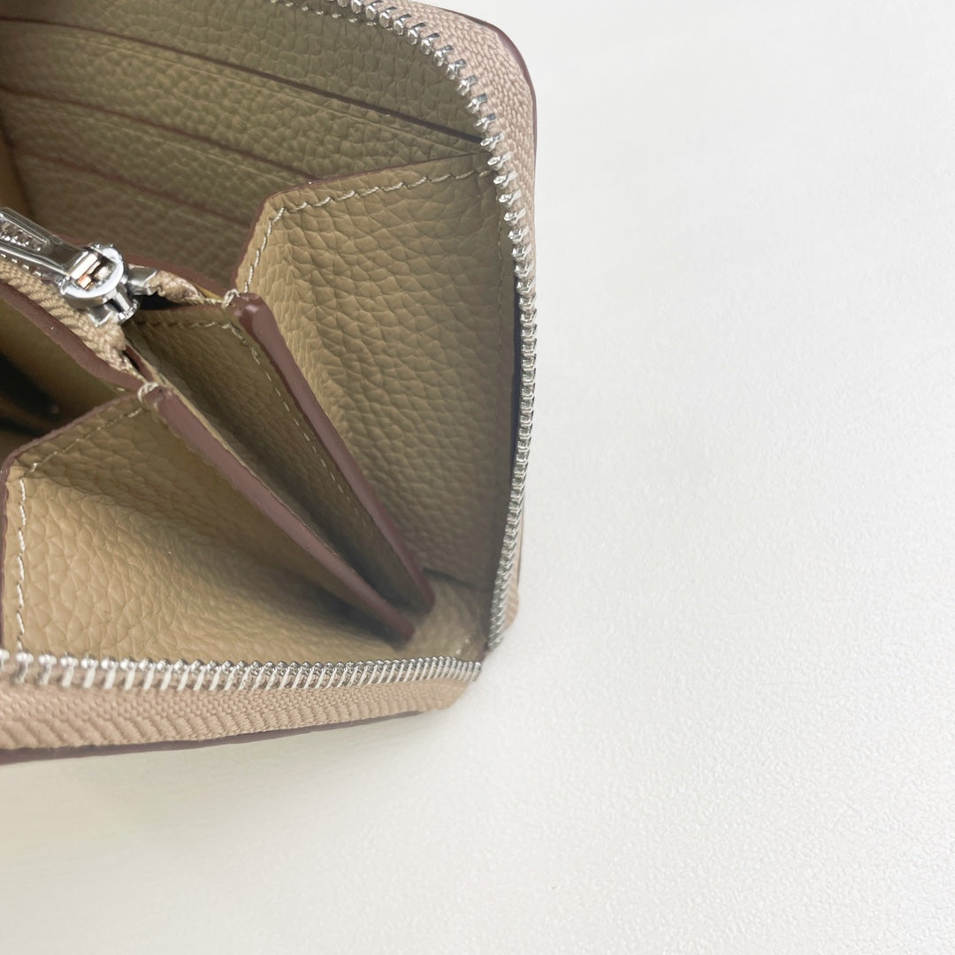 HM SILK'IN HOLED SHORT WALLET 11.5 KHAKI GRAINED CALFSKIN