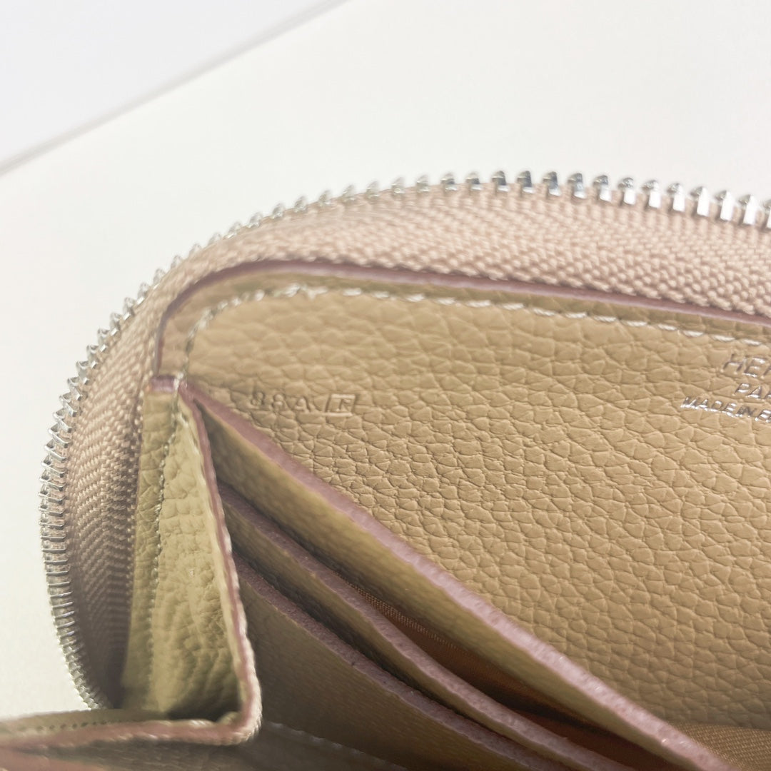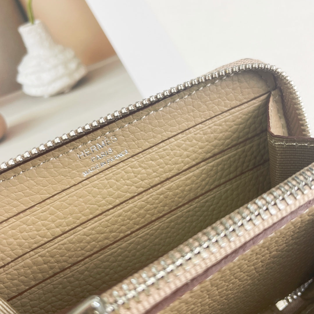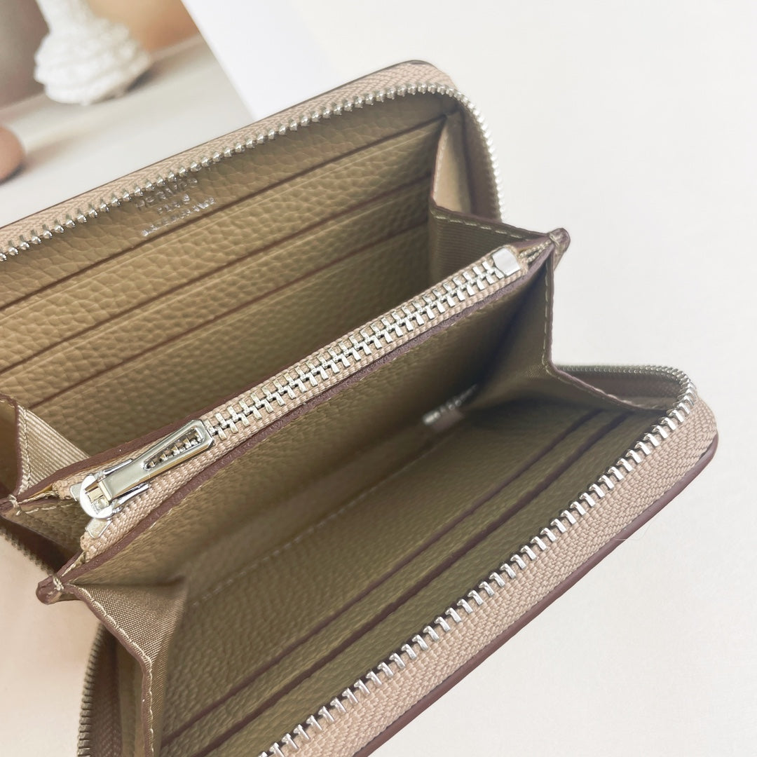 HM SILK'IN HOLED SHORT WALLET 11.5 KHAKI GRAINED CALFSKIN