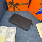 HM SILK'IN HOLED WALLET 19 BLACK GRAINED CALFSKIN