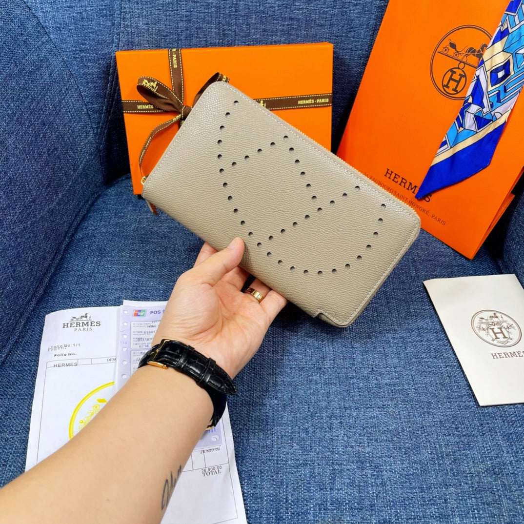 HM SILK'IN HOLED WALLET 19 KHAKI CALFSKIN