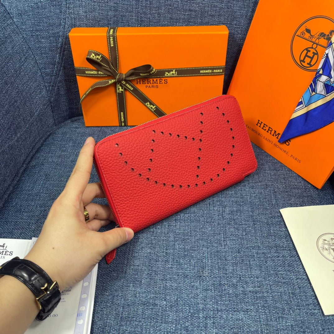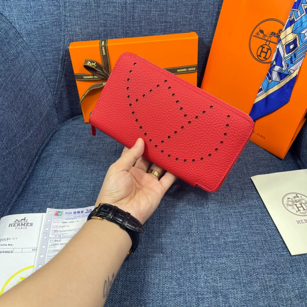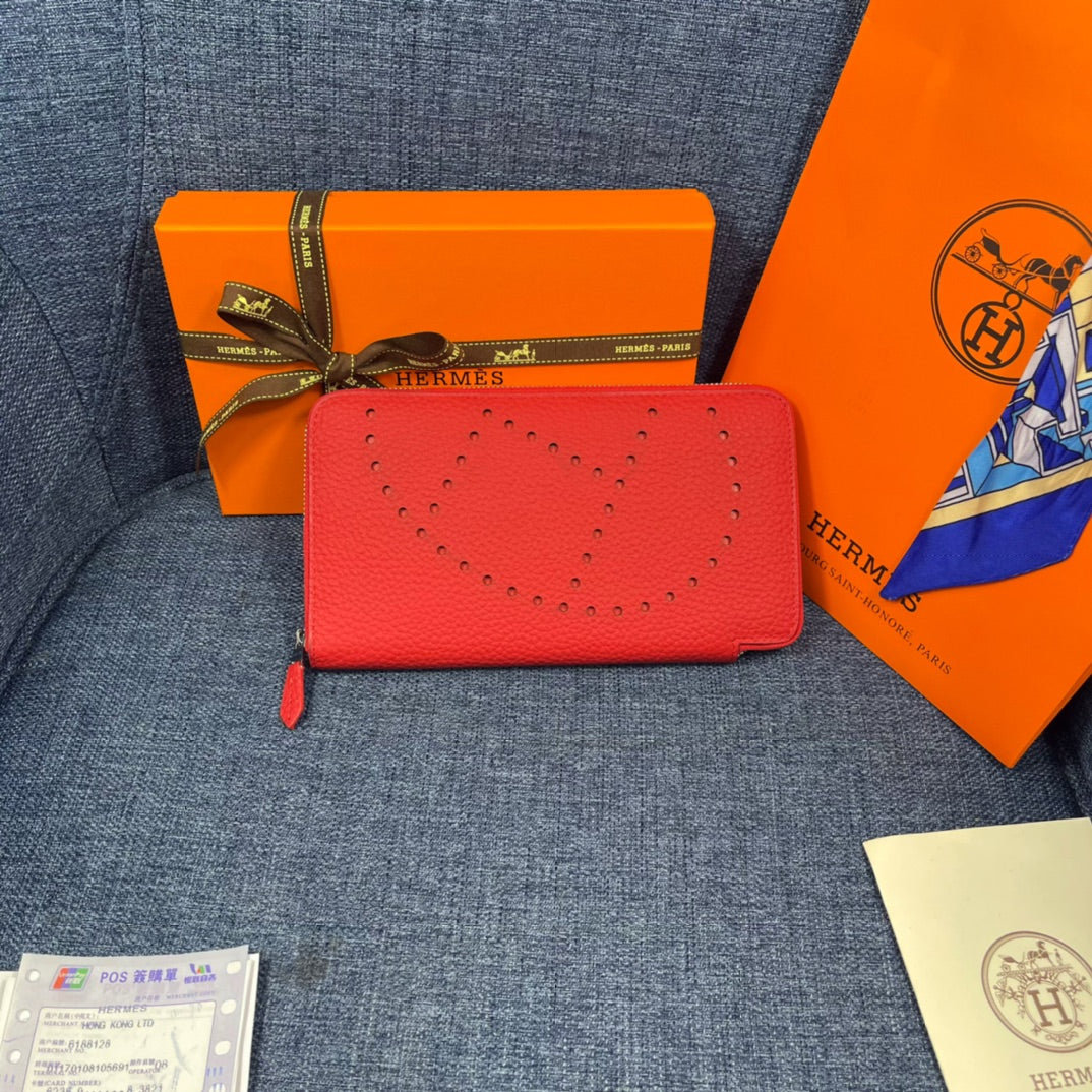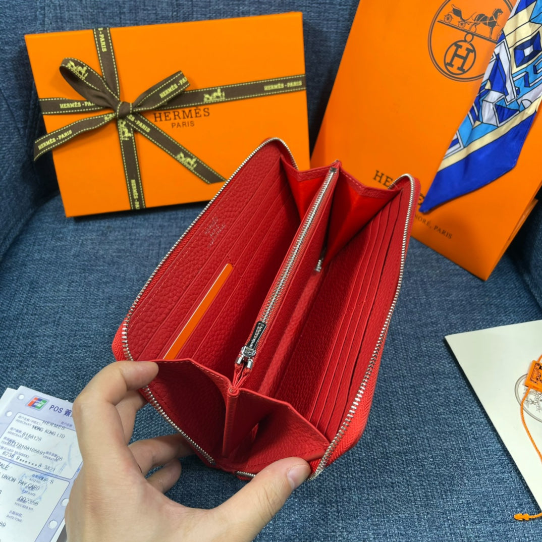HM SILK'IN HOLED WALLET 19 RED GRAINED CALFSKIN