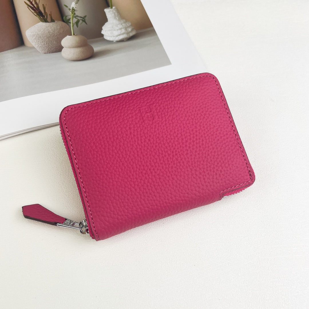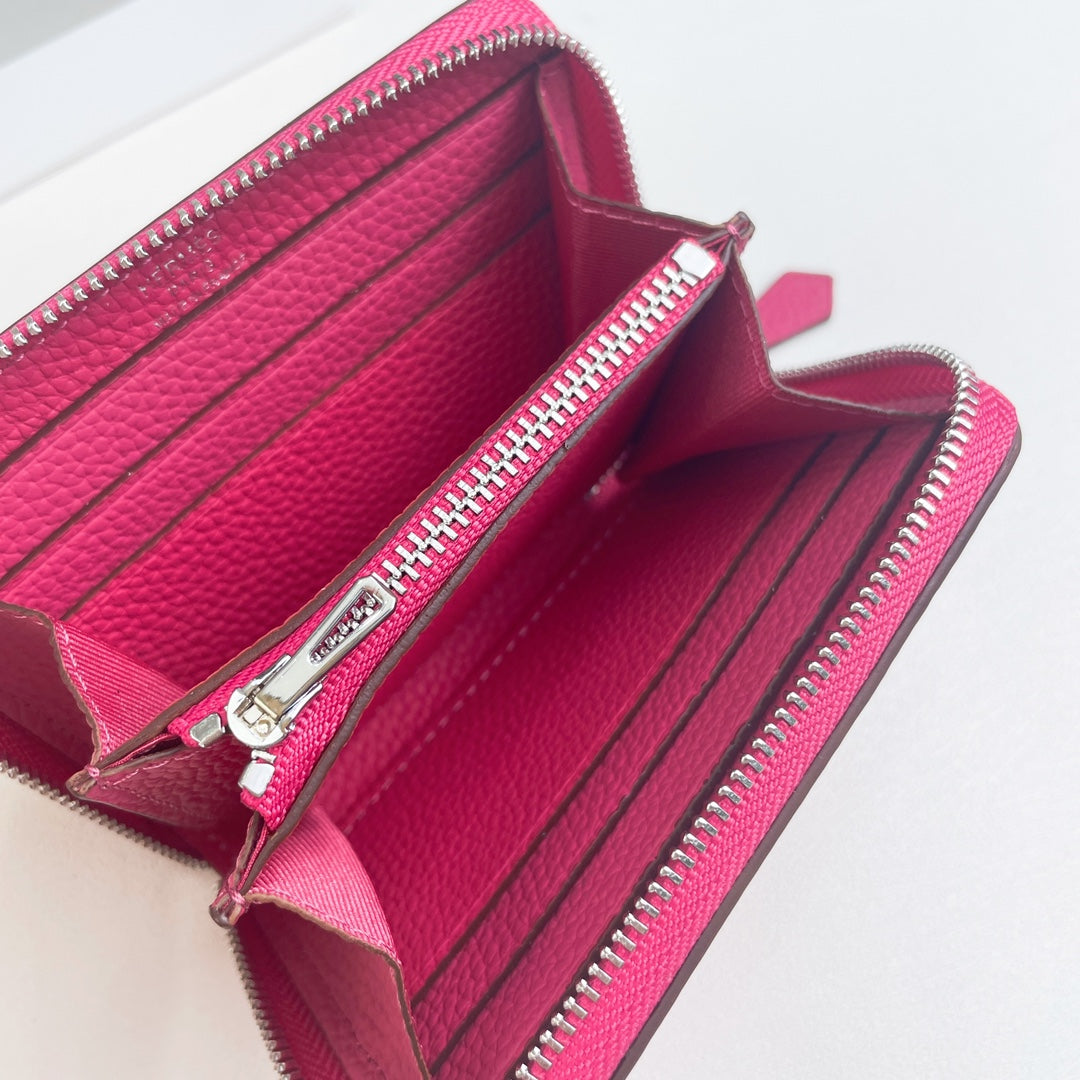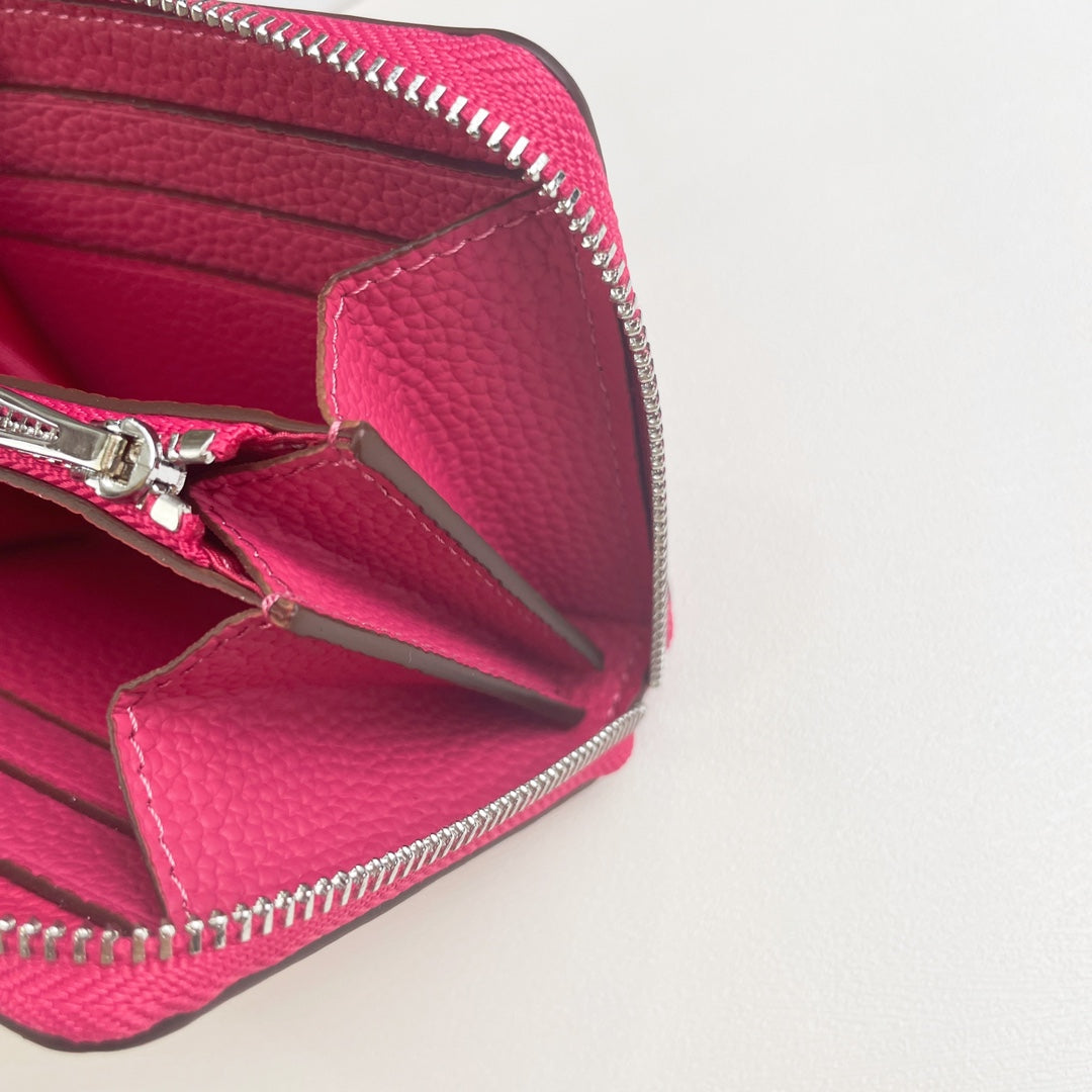 HM SILK'IN SHORT WALLET 11.5 RED PINK GRAINED CALFSKIN
