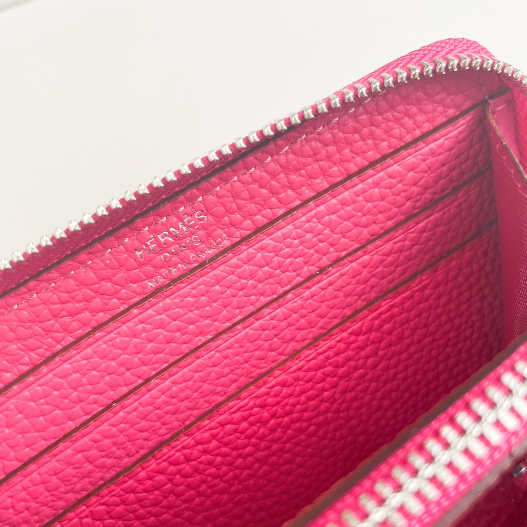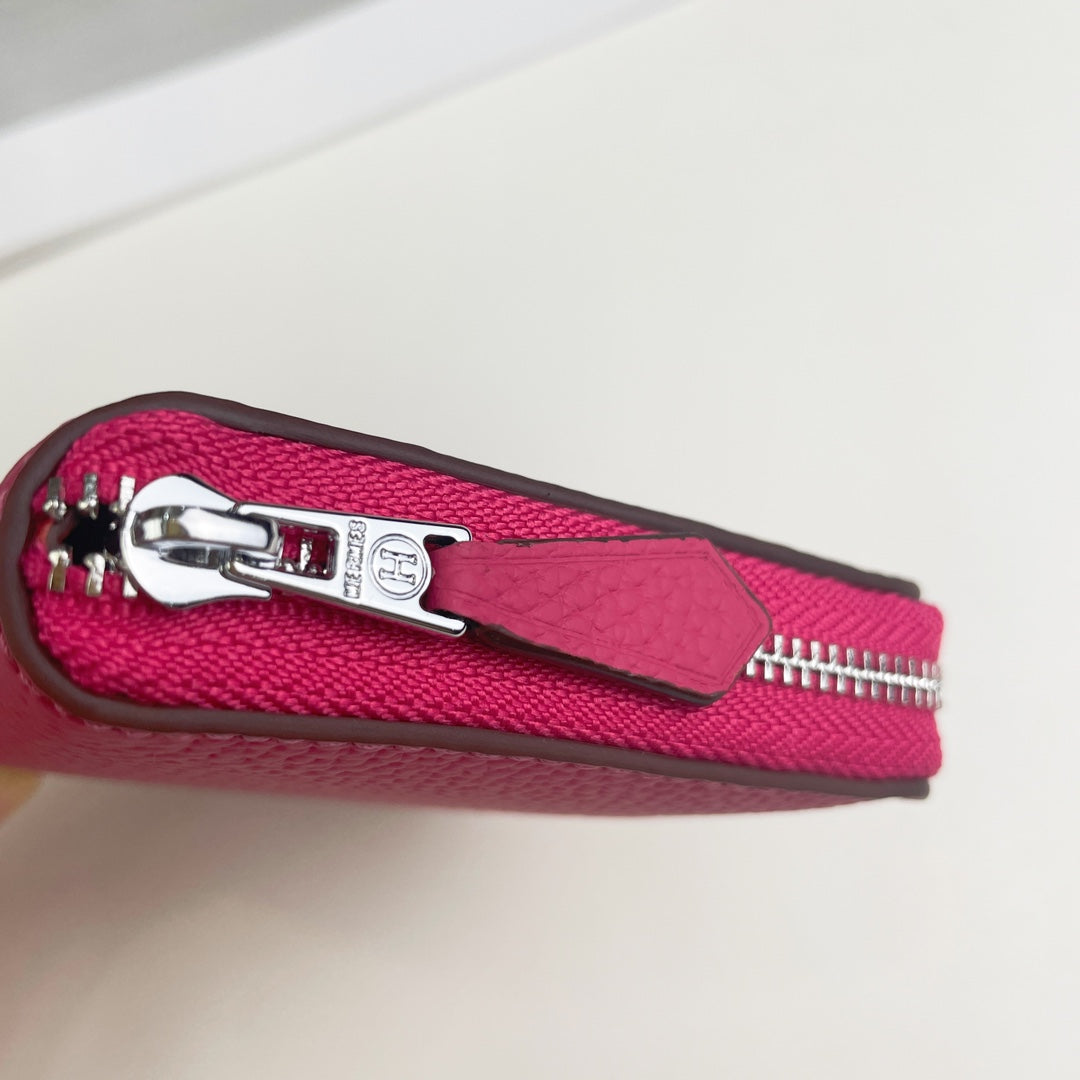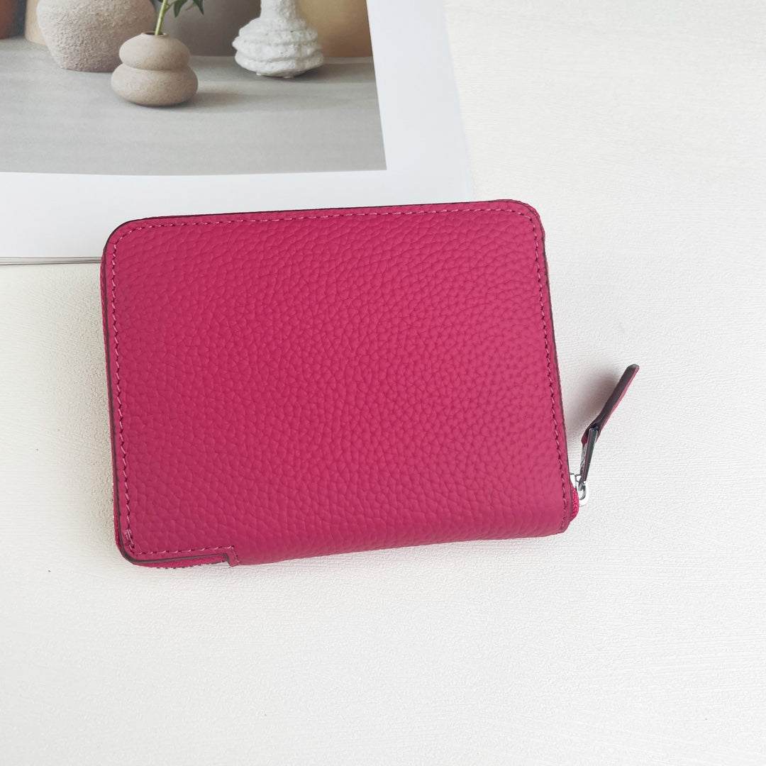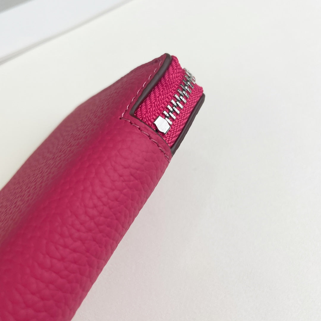 HM SILK'IN SHORT WALLET 11.5 RED PINK GRAINED CALFSKIN