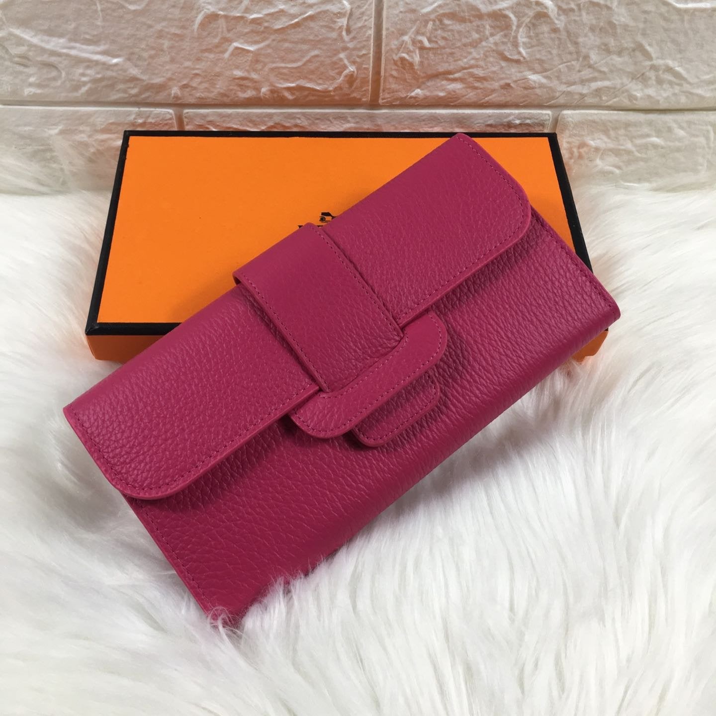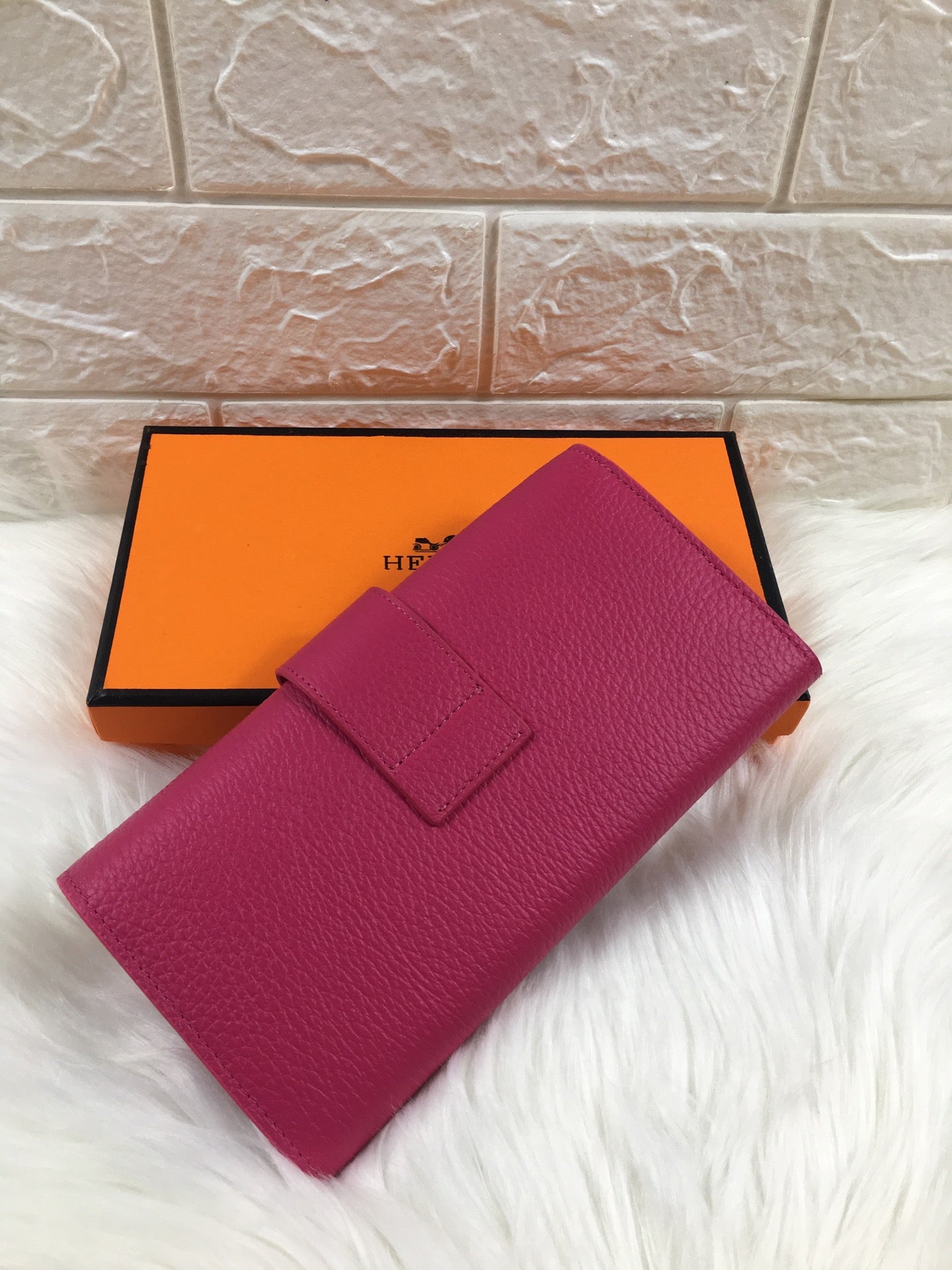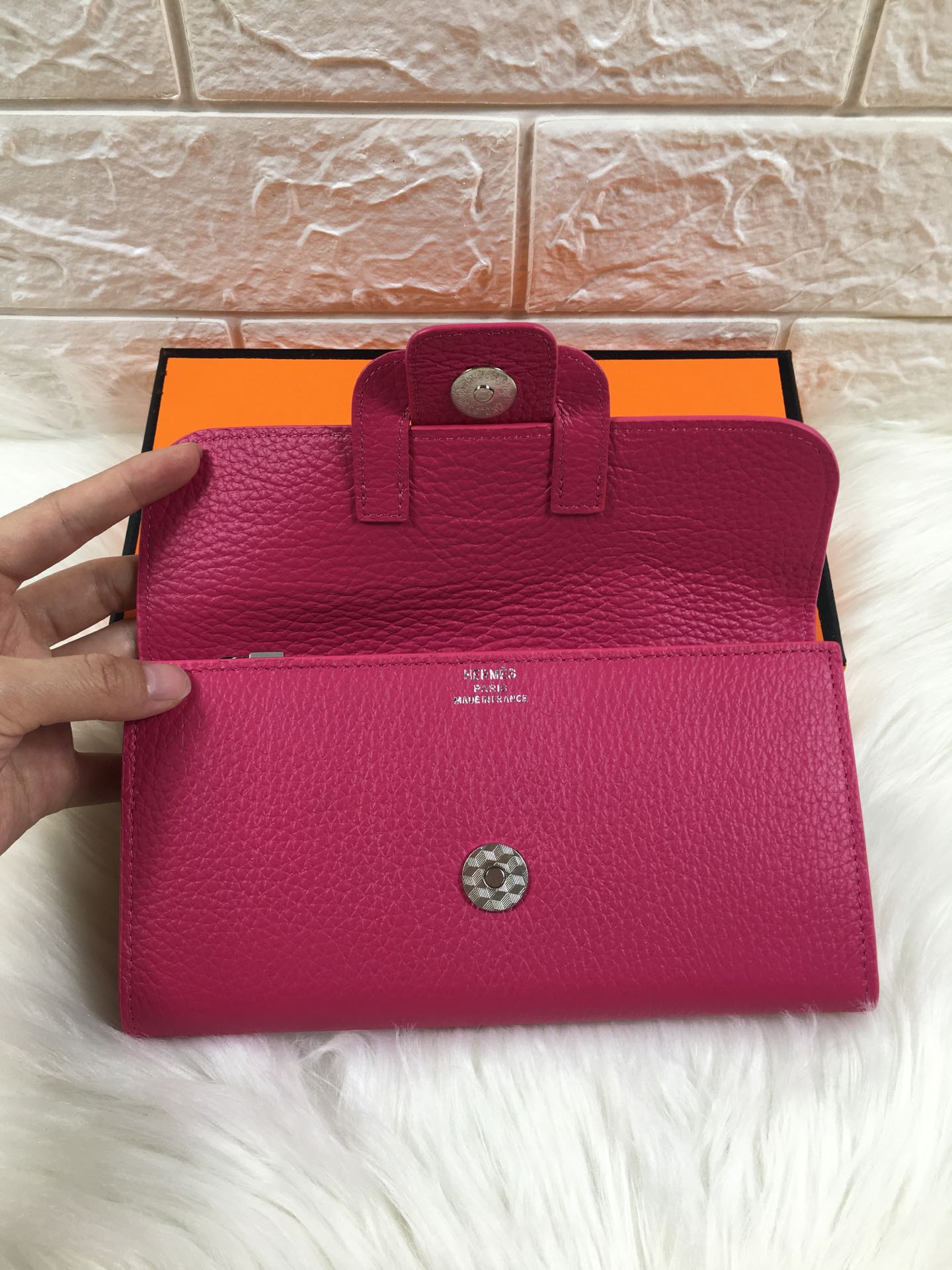 HM SNAP LOCK WALLET 19.5 DEEP PINK GRAINED CALFSKIN