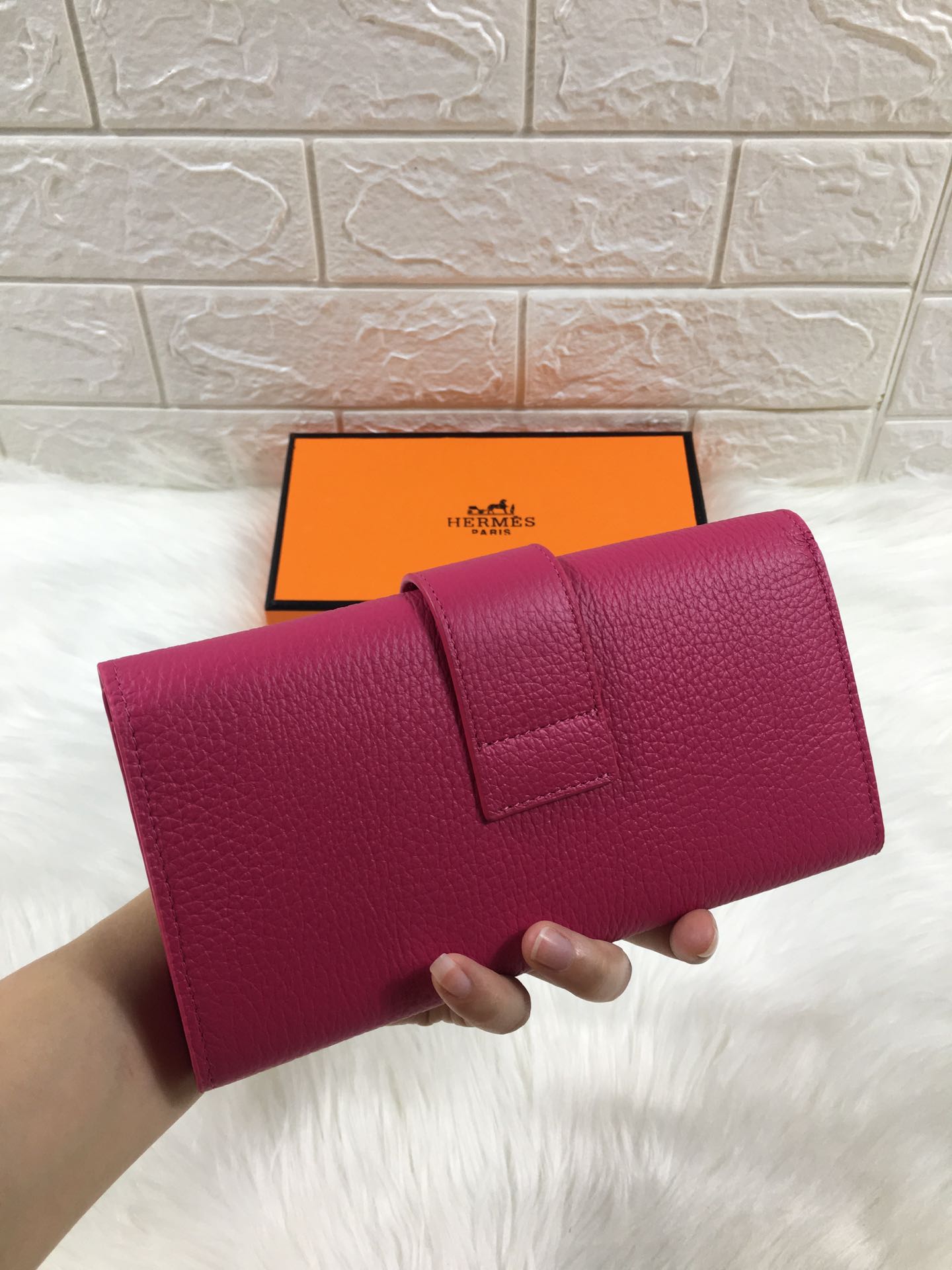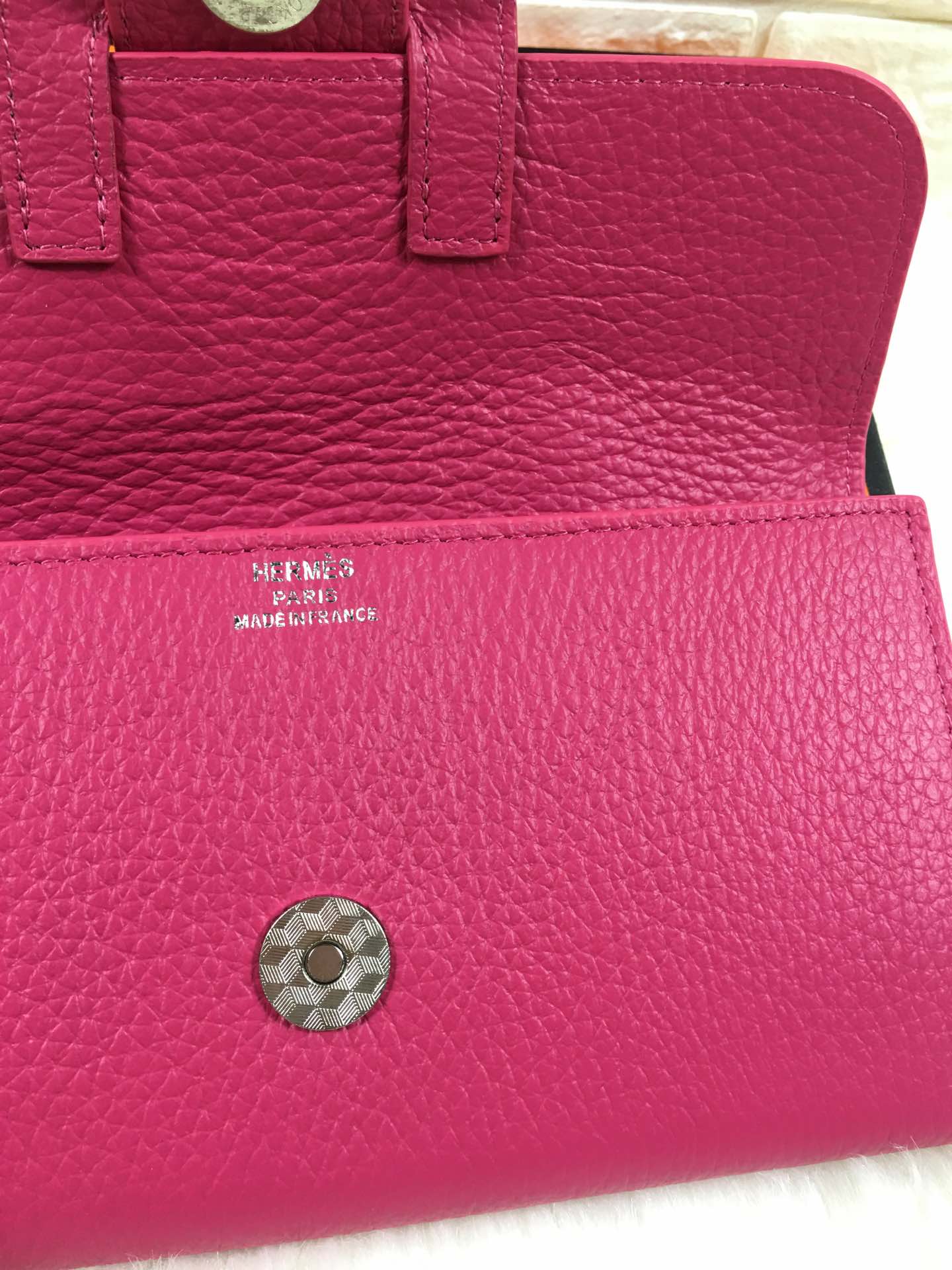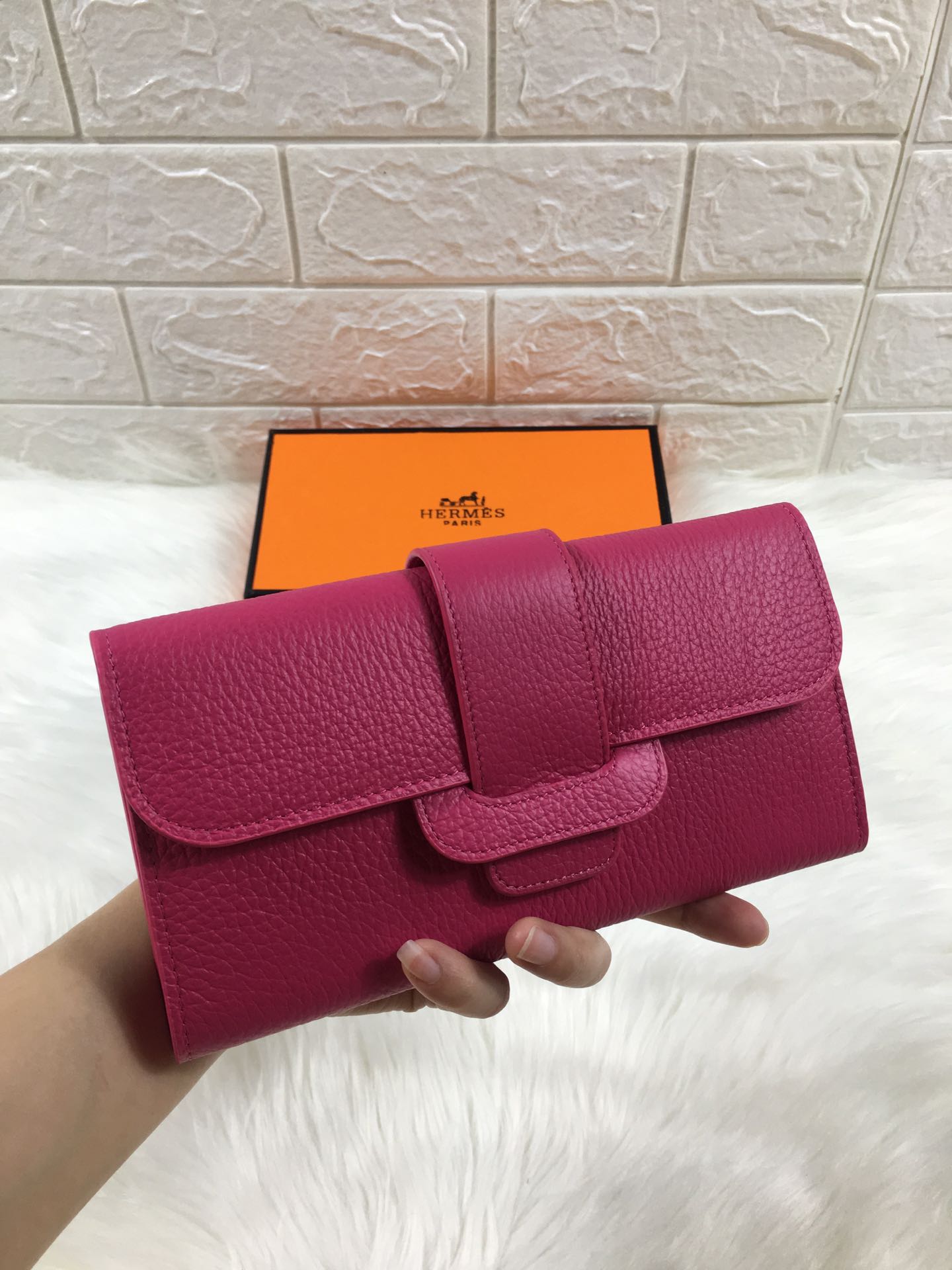 HM SNAP LOCK WALLET 19.5 DEEP PINK GRAINED CALFSKIN