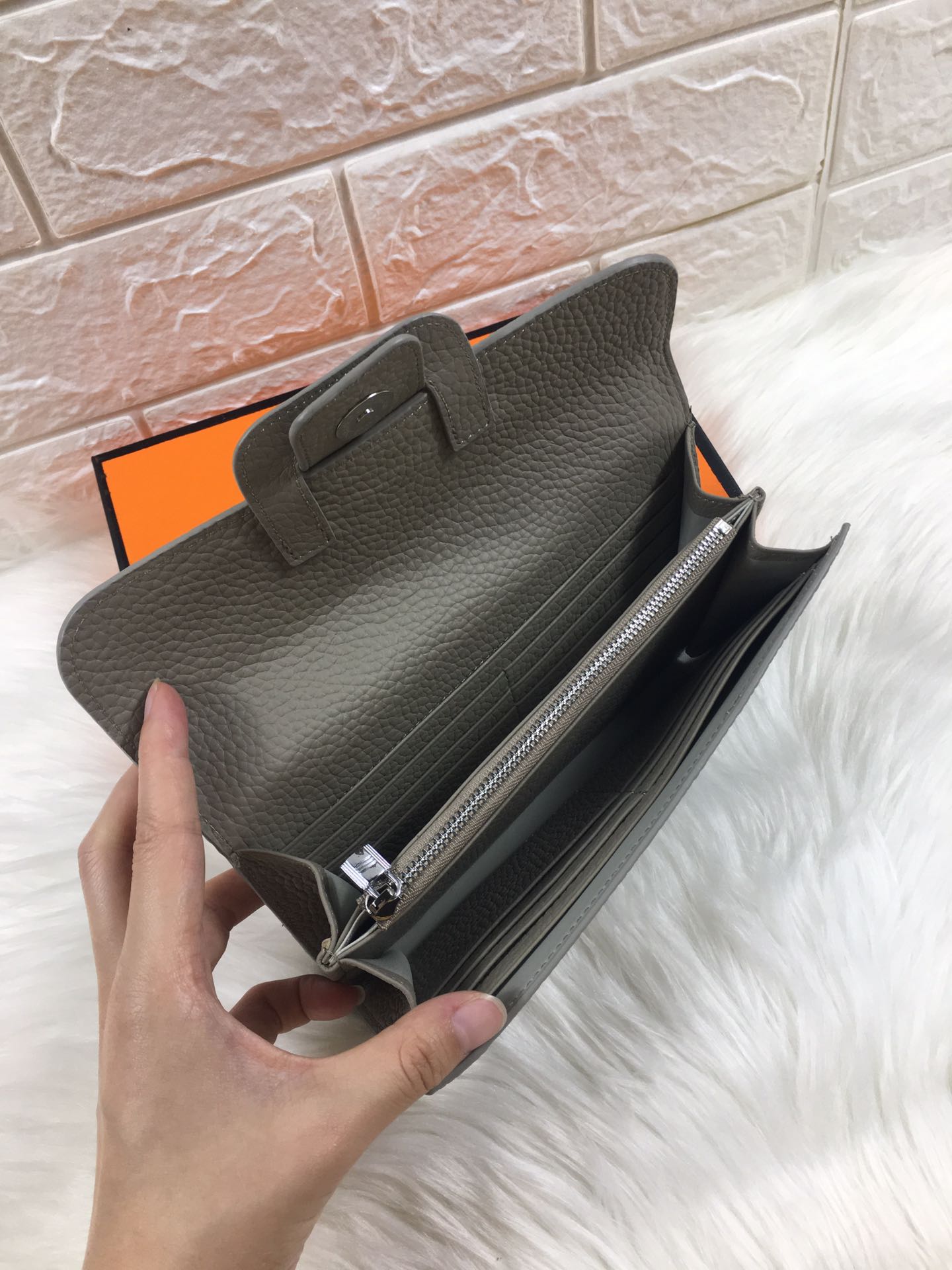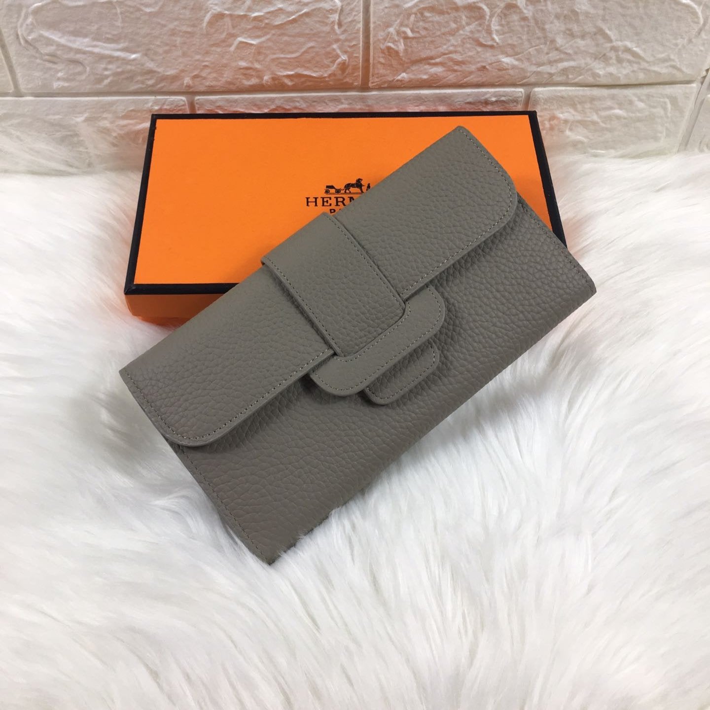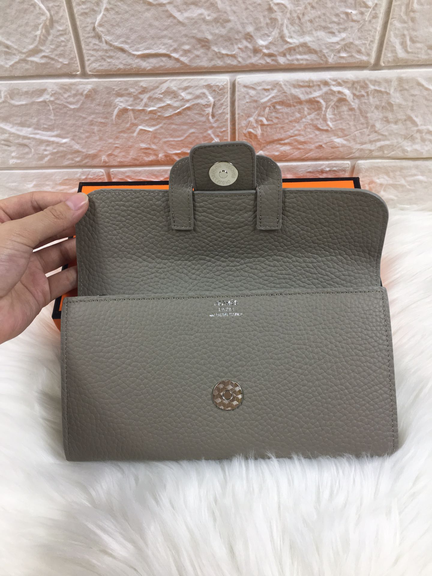HM SNAP LOCK WALLET 19.5 GRAY GRAINED CALFSKIN