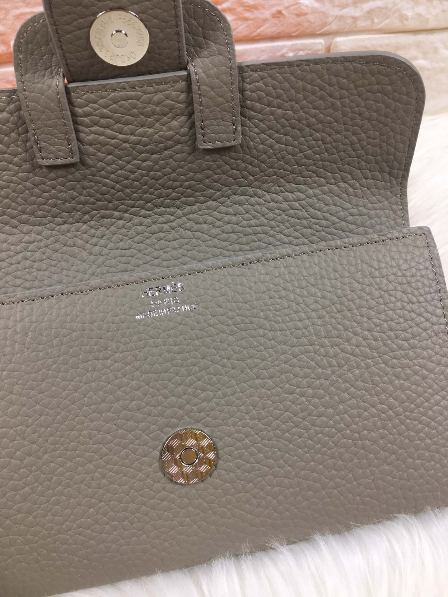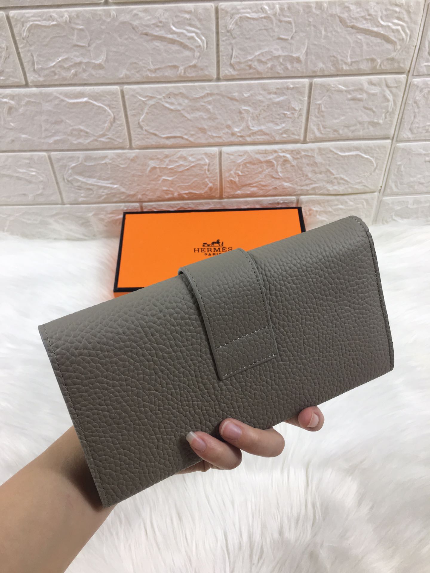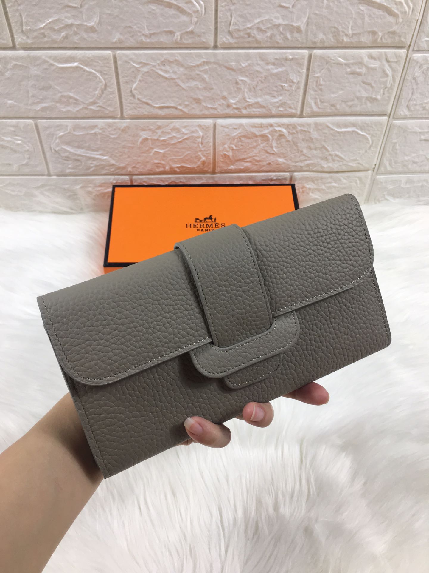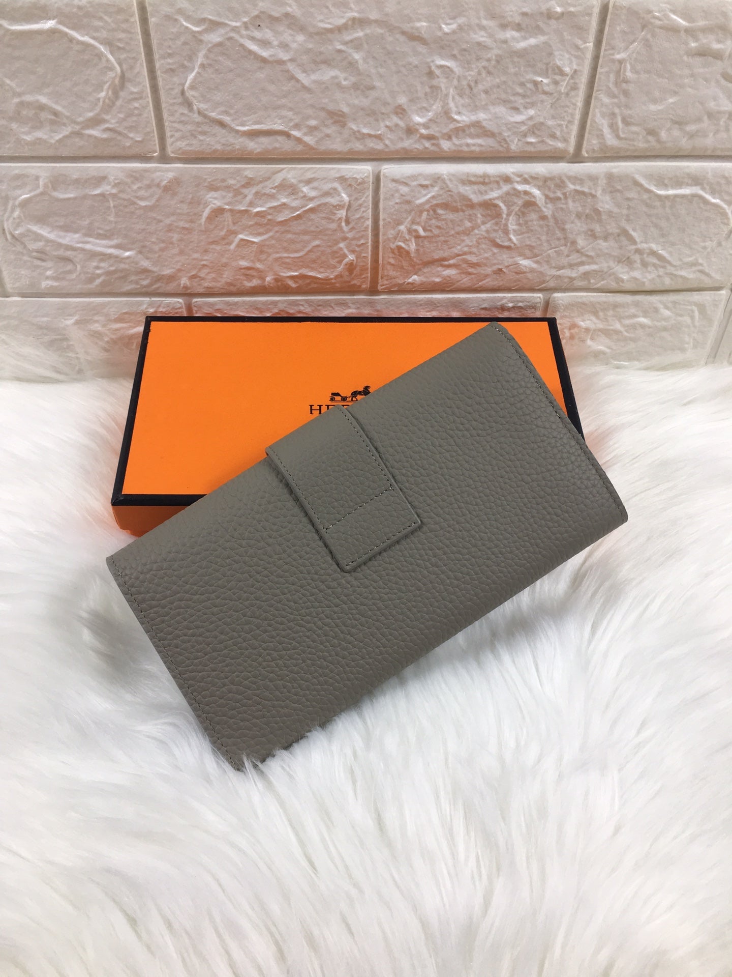 HM SNAP LOCK WALLET 19.5 GRAY GRAINED CALFSKIN