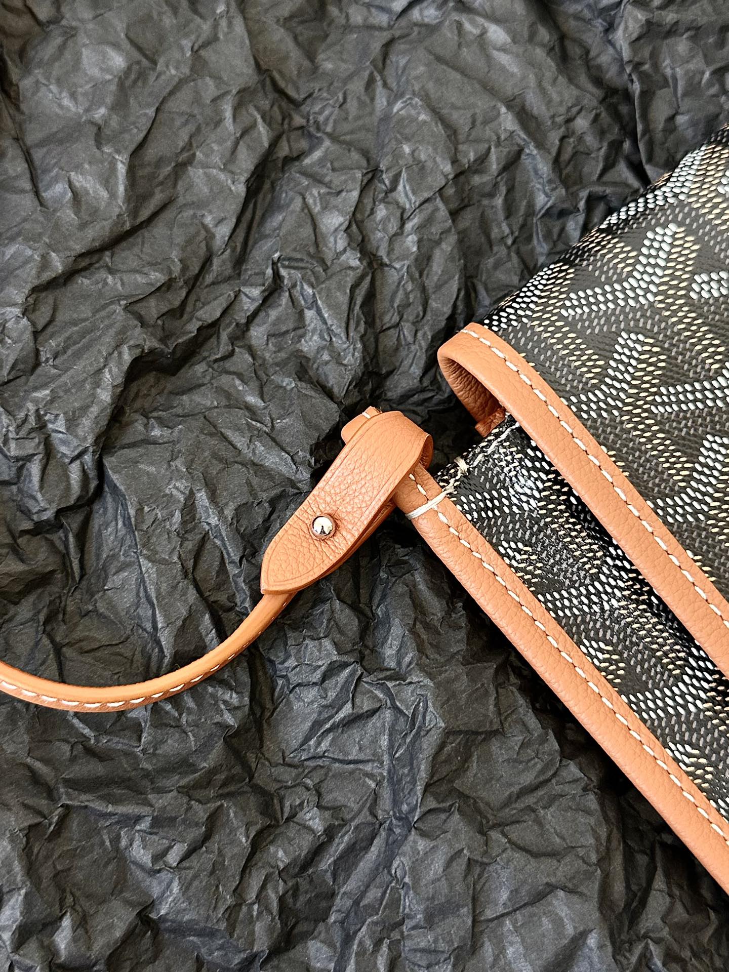 PLUMET POCKET WALLET 20 IN BLACK GOYARDINE CANVAS AND TAN LAMBSKIN TRIM