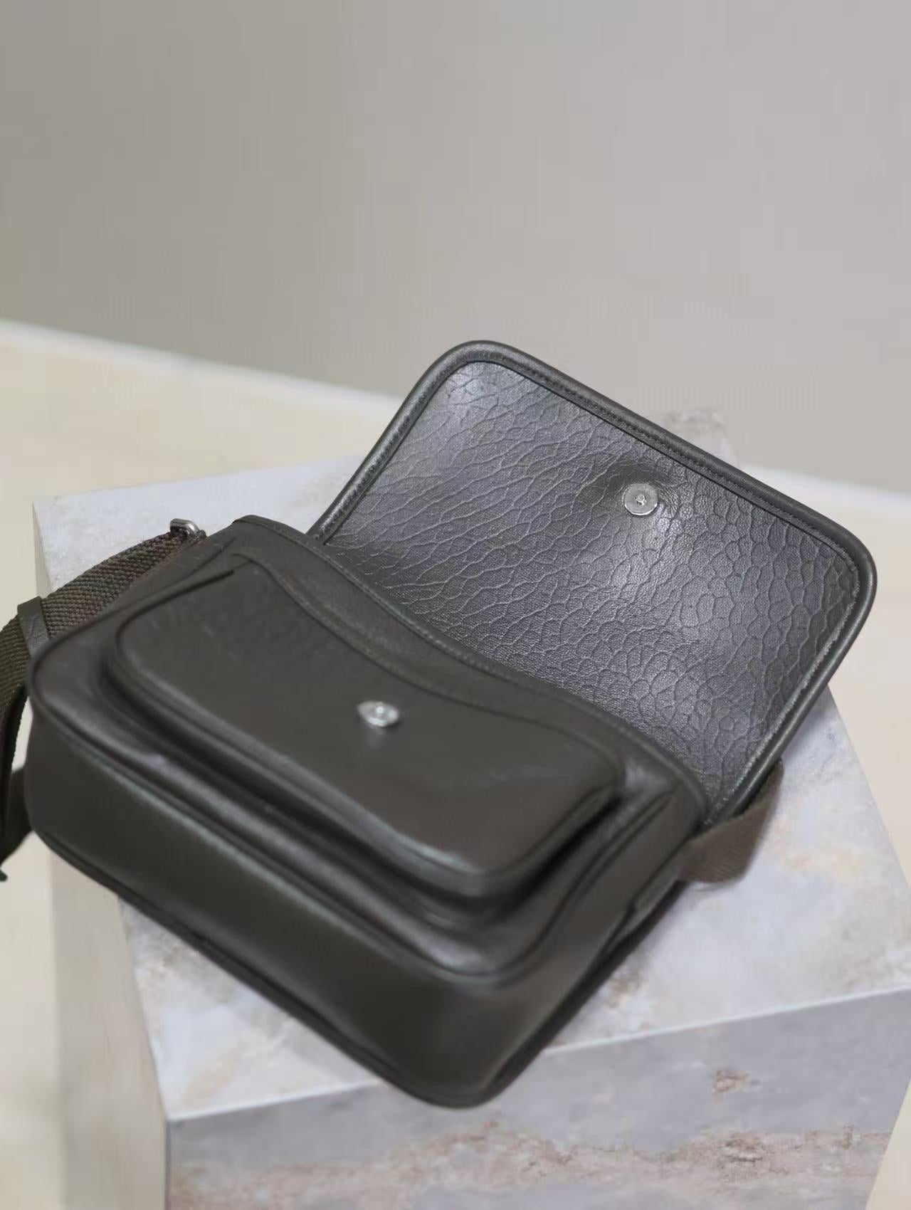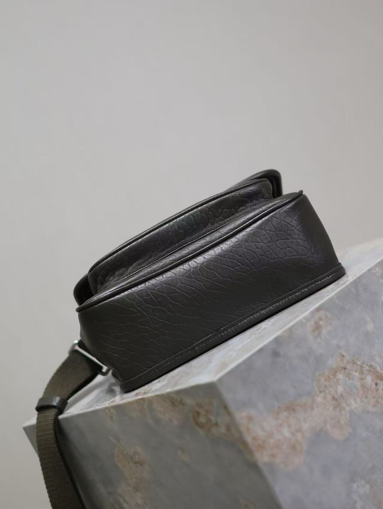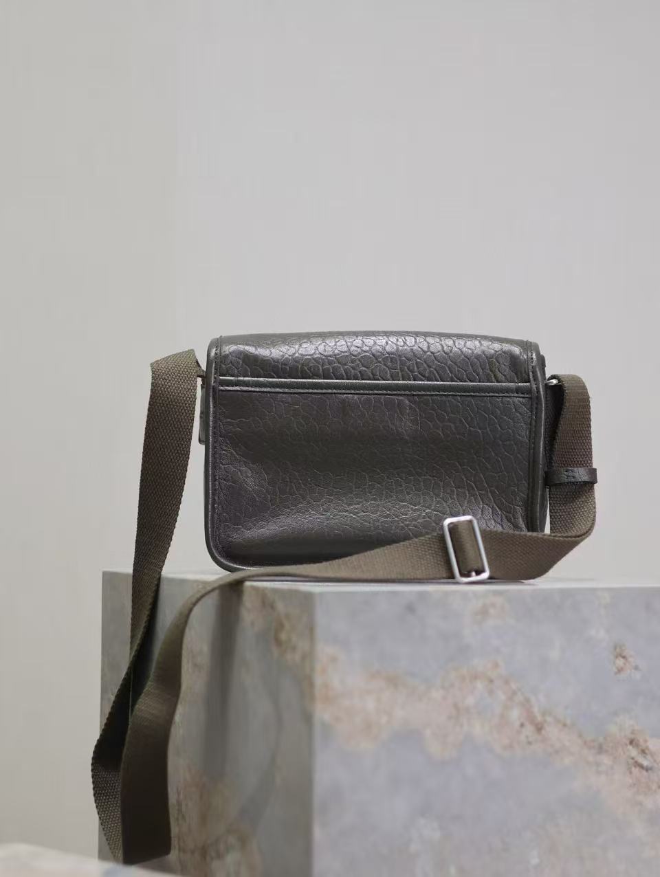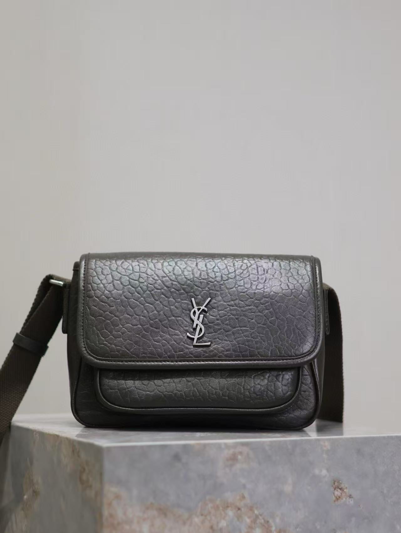 Saint Laurent Niki Logo Plaque Messenger Bag Dark Green Calfskin