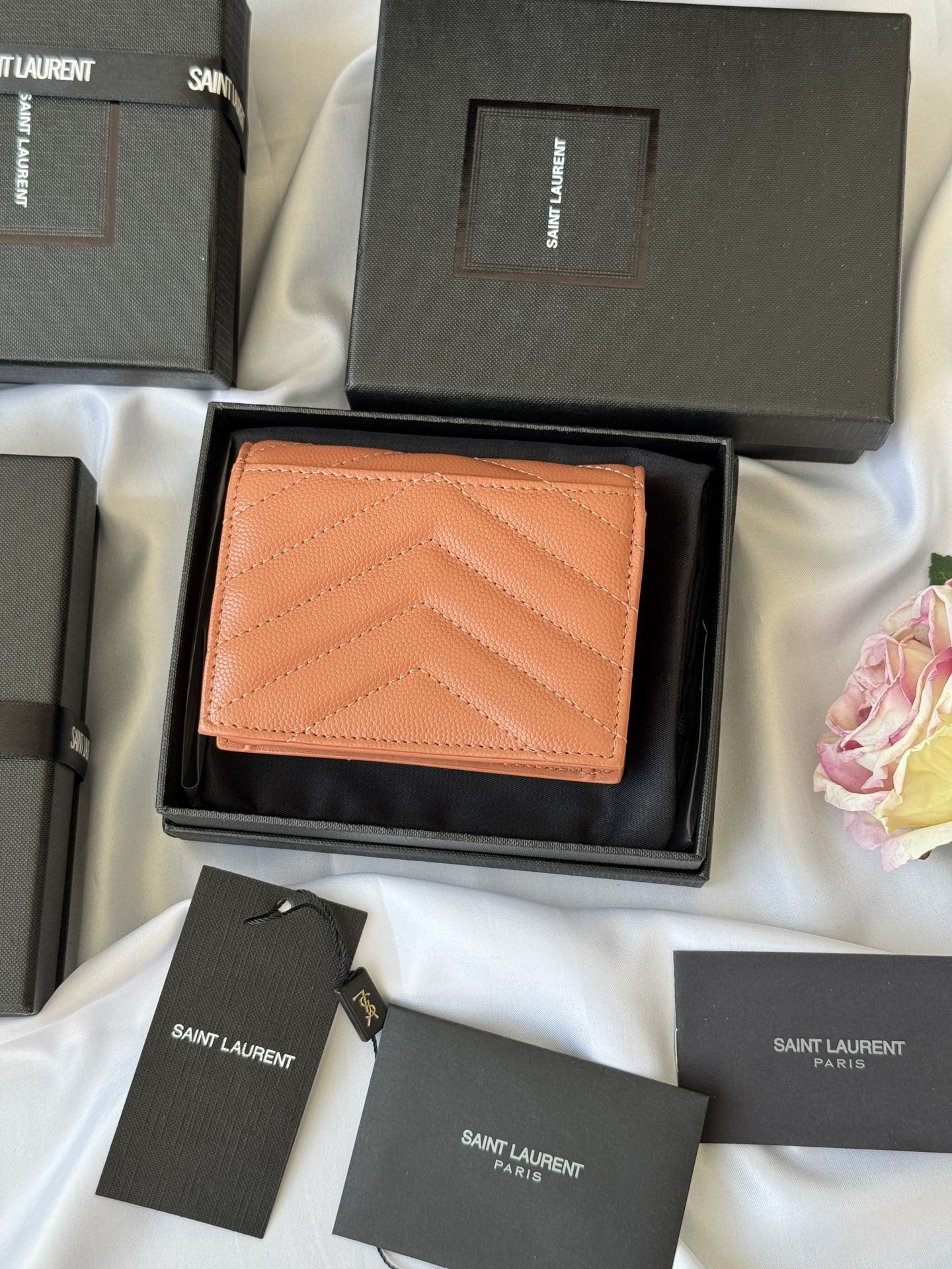 YSL Wallet Pink Gold Cowhide 240584
