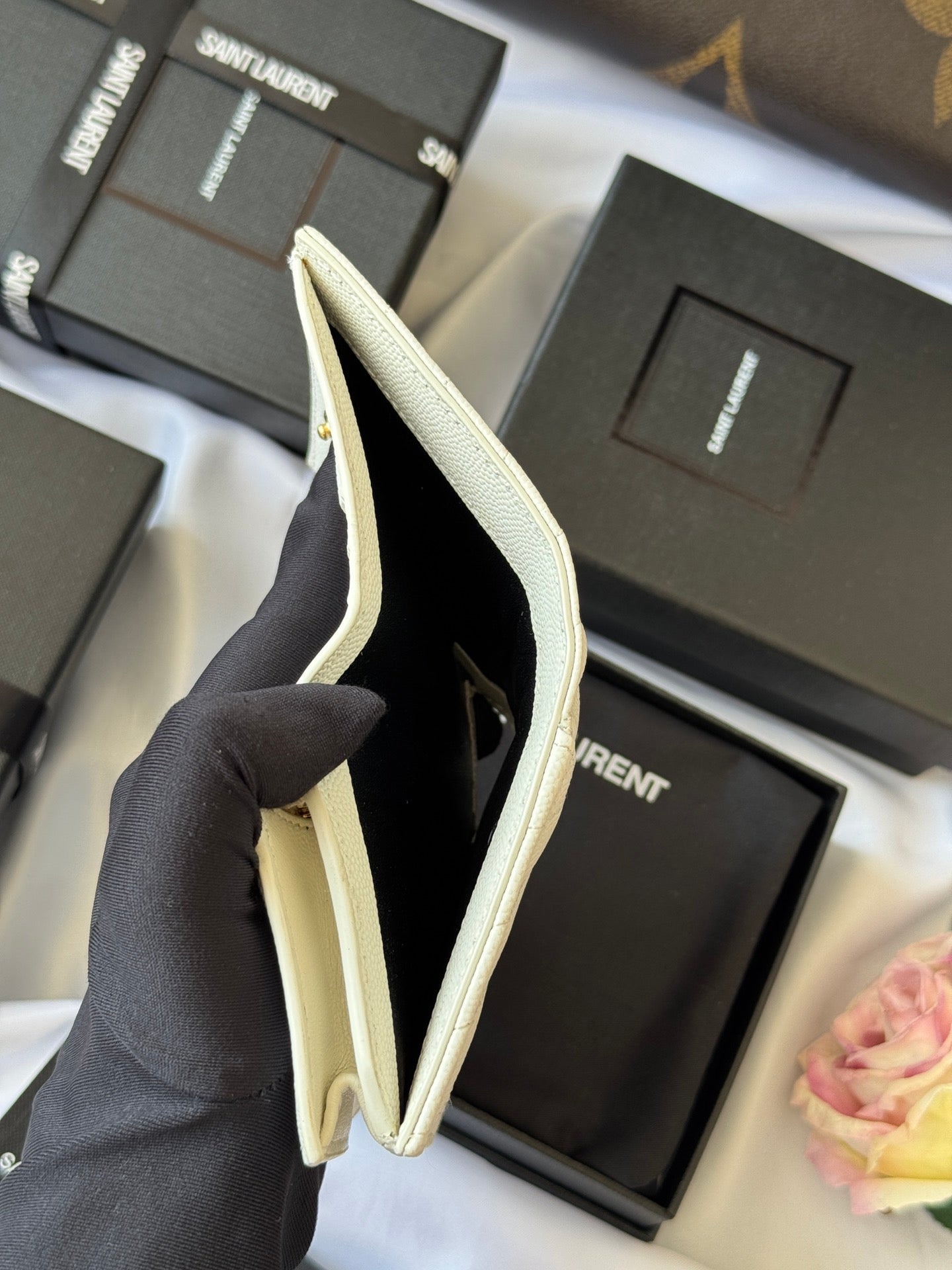 YSL Wallet White Gold Cowhide 240578