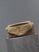 CALYPSO BAG 26 IN BEIGE SHEARLING WITH BROWN SUEDE HANDLE