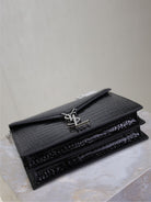CASSANDRA CHAIN BAG 22 IN BLACK CROCODILE PATTERN CALFSKIN SILVER HARDWARE