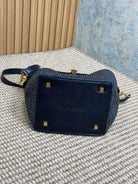 le 37 woven raffia 20cm black calfskin
