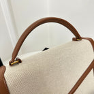 SL Cassandra Top Handle 2wayBag Beige Canvas Brown Leather