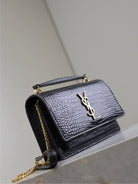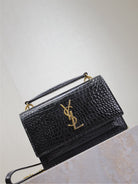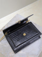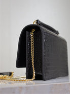 SUNSET SMALL BAG 19 IN BLACK CROCODILE-EMBOSSED CALFSKIN COPPER HARDWARE