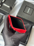 YSL Card Holder 10cm Wallet Red Gold Crocodile Leather 240563