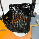 YSL OXALIS 37CM BLACK RAFFIA TAN CALFSKIN