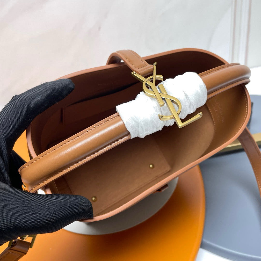 YSL OXALIS 37CM BEIGE RAFFIA TAN CALFSKIN