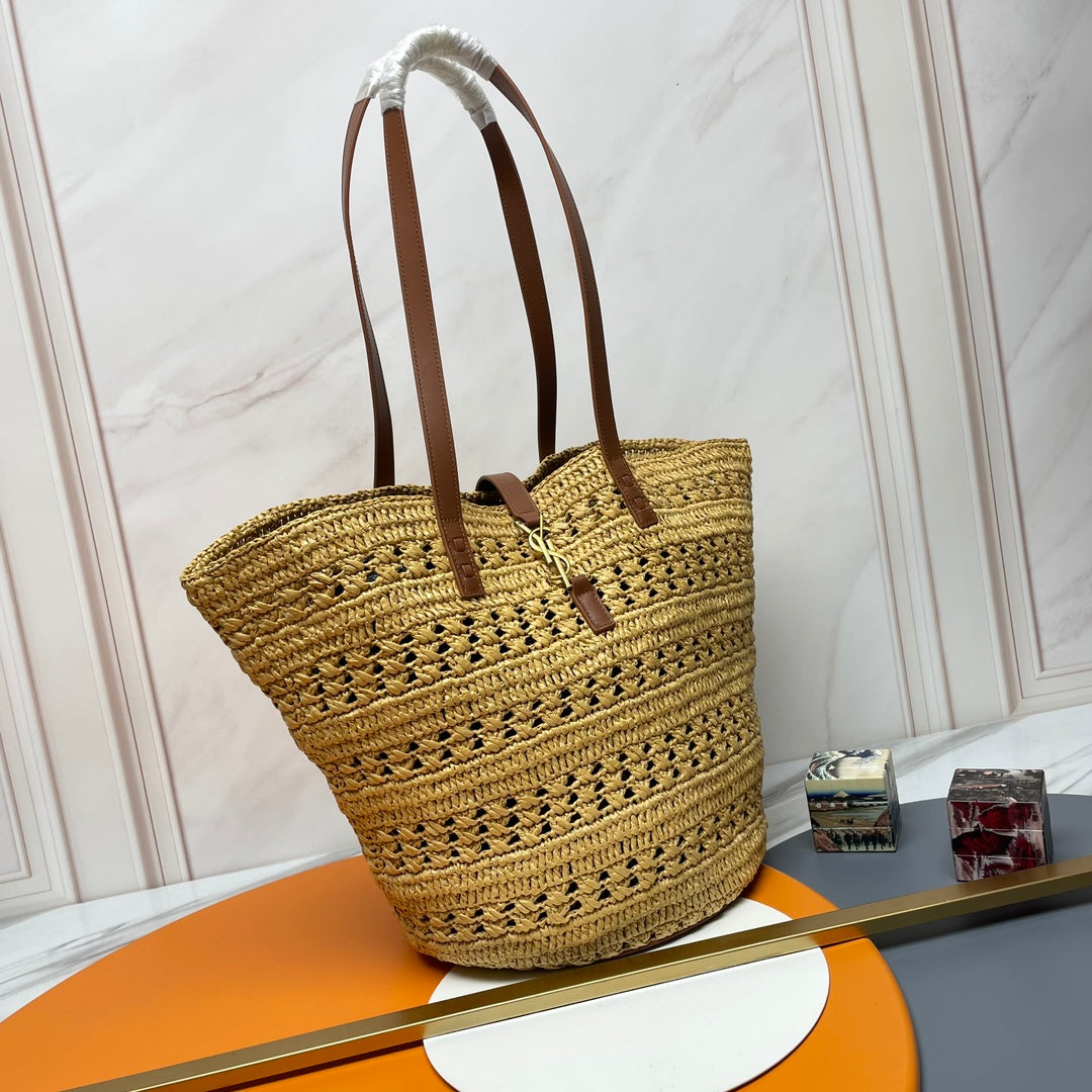 YSL MEDIUM 44CM PANIER BEIGE RAFFIA TOTE BAG