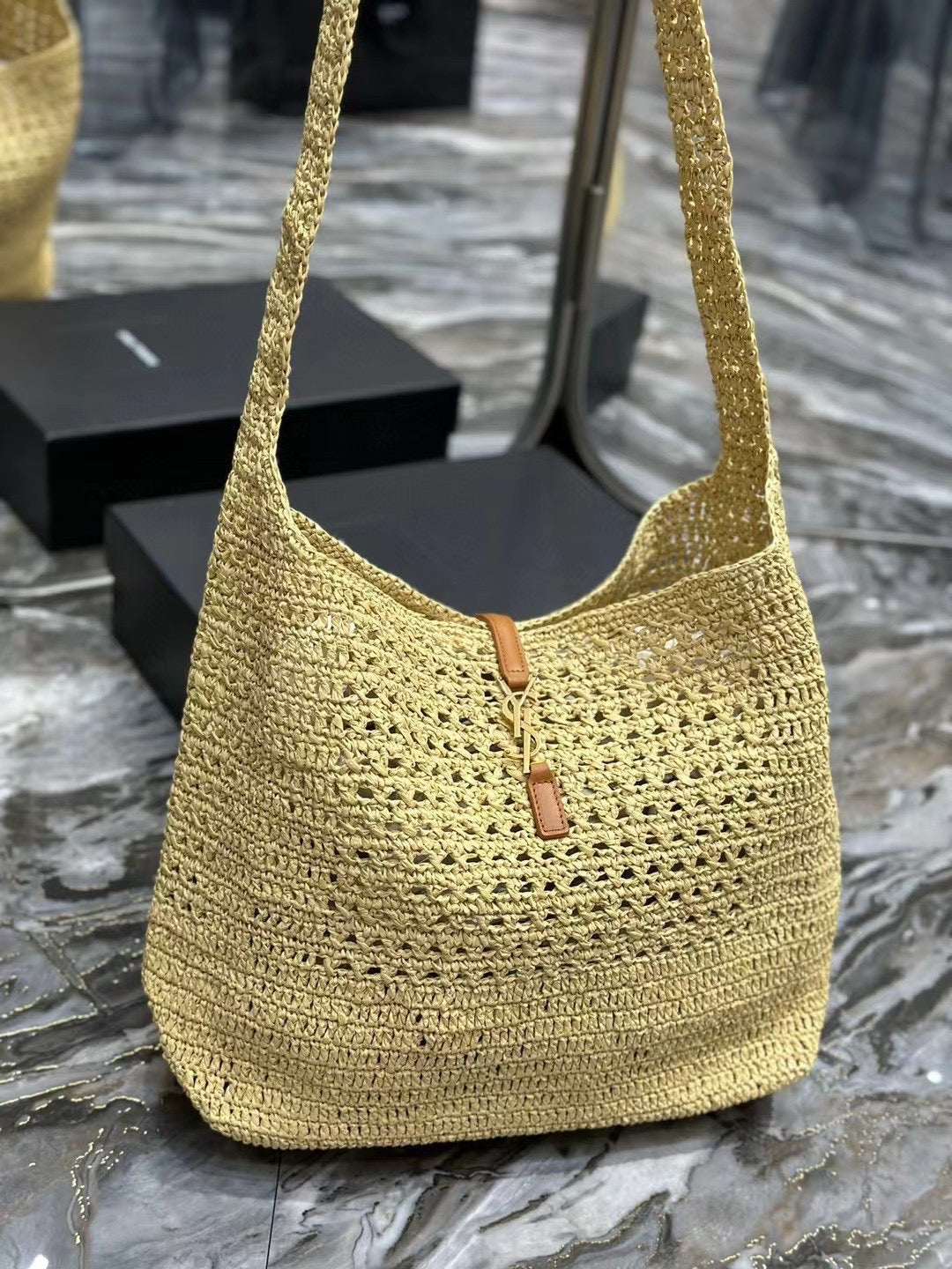 YSL HOBO BAG 30CM BEIGE RAFFIA